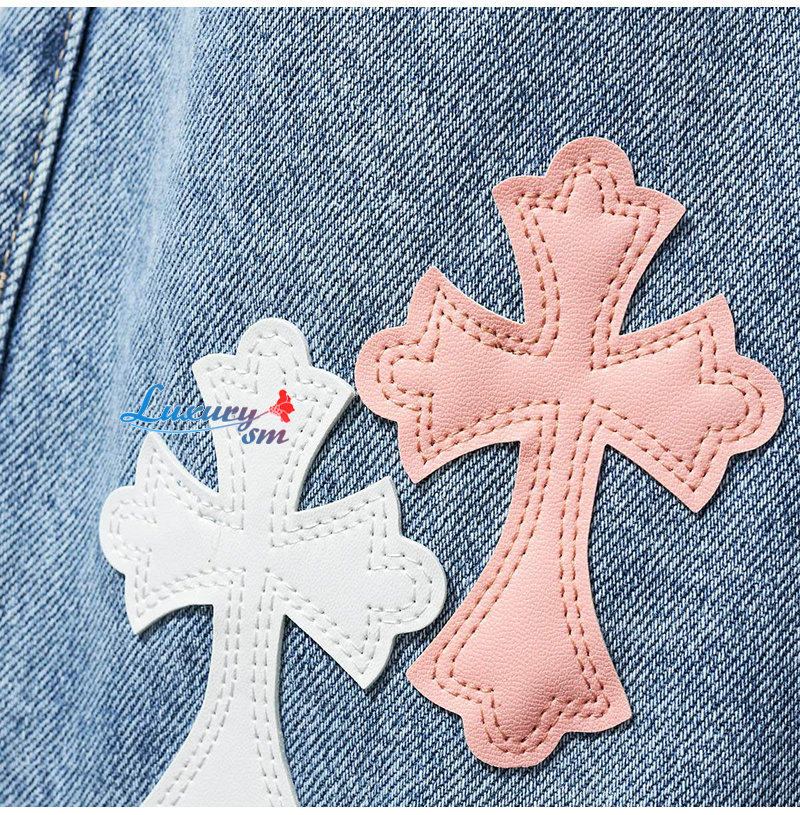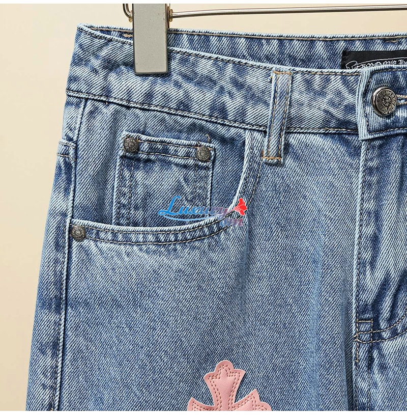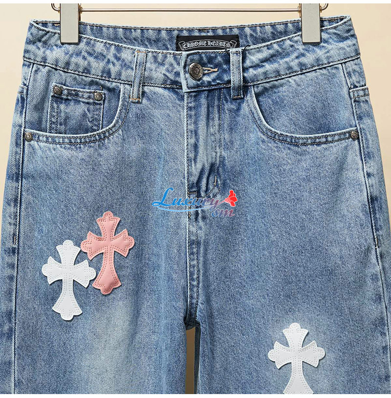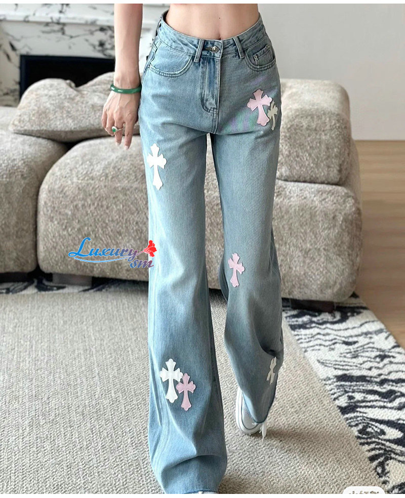 CHROMEHEARTS-06131 크롬하츠 블루 십자가 아플리케 장식 청바지 여성용