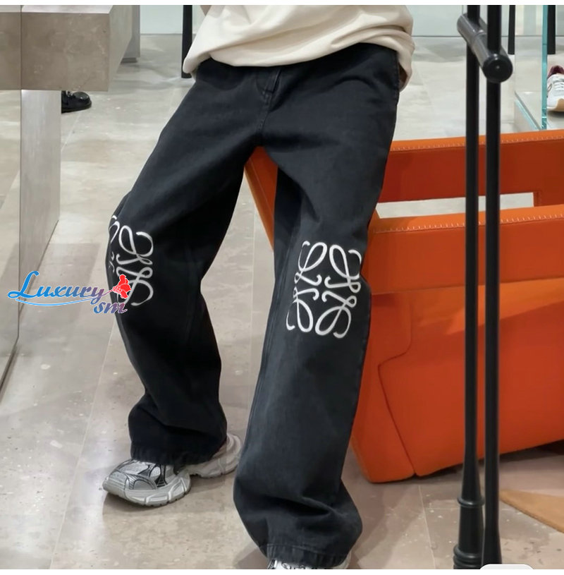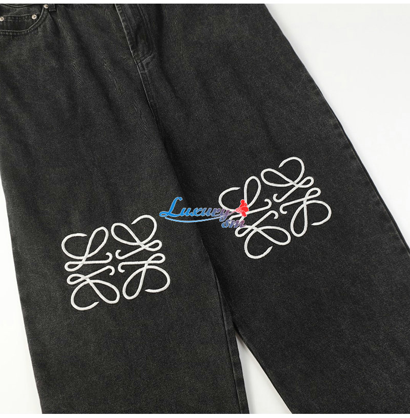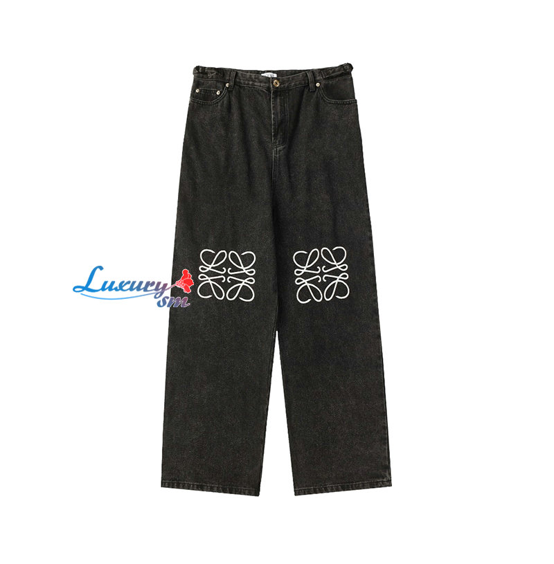 LOEWE-12242 로에베 블랙 아플리케 장식 청바지 남여공용