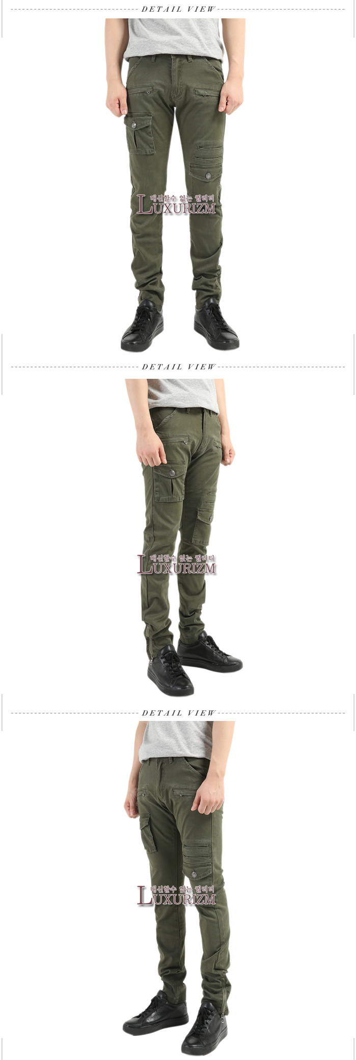 -피에르발망 사이드 입체포켓 밑단지퍼 카고 팬츠 카키
