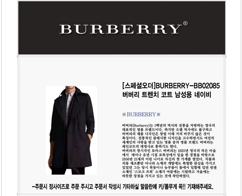 [스페셜오더]BURBERRY-BB02085 버버리 트렌치 코트 남성용 네이비