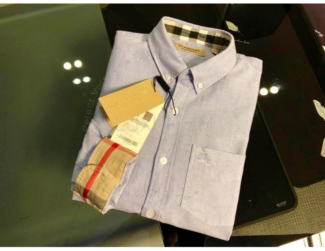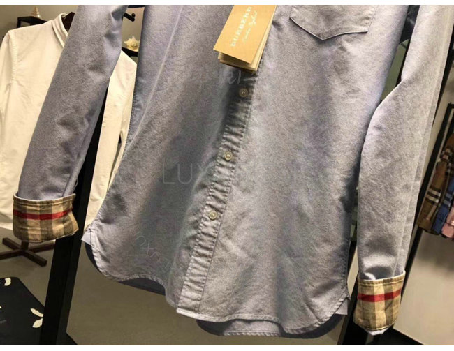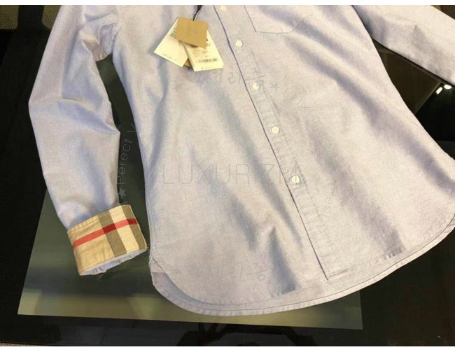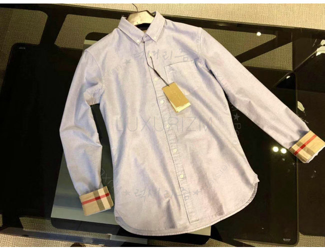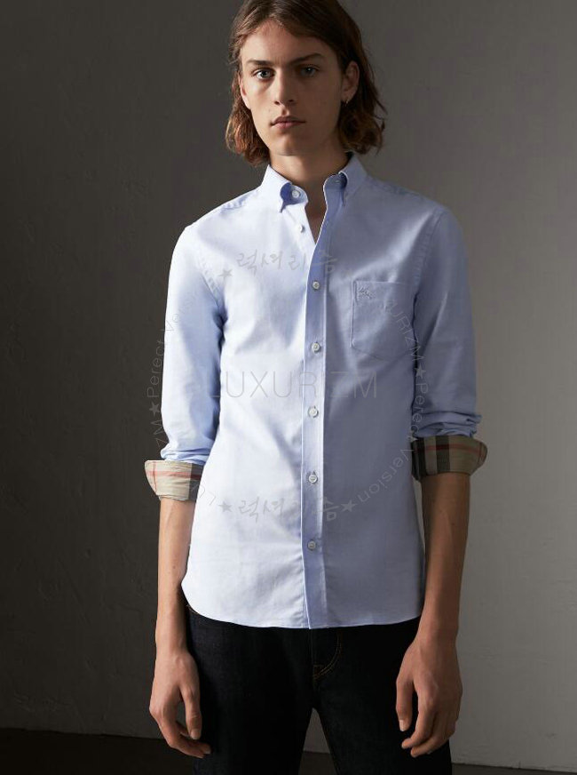 BURBERRY-39961141 버버리 체크 디테일 라이트 블루 코튼 옥스퍼드 셔츠