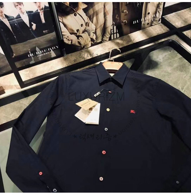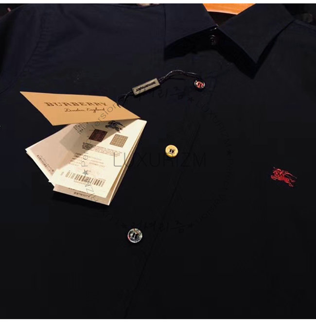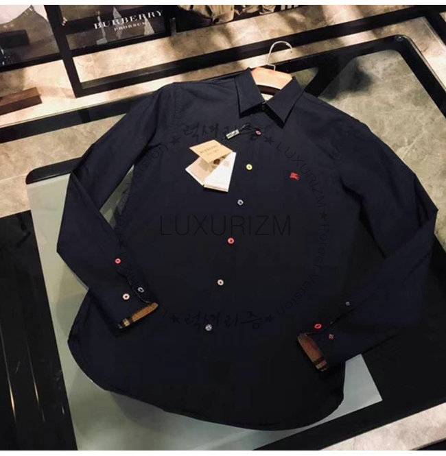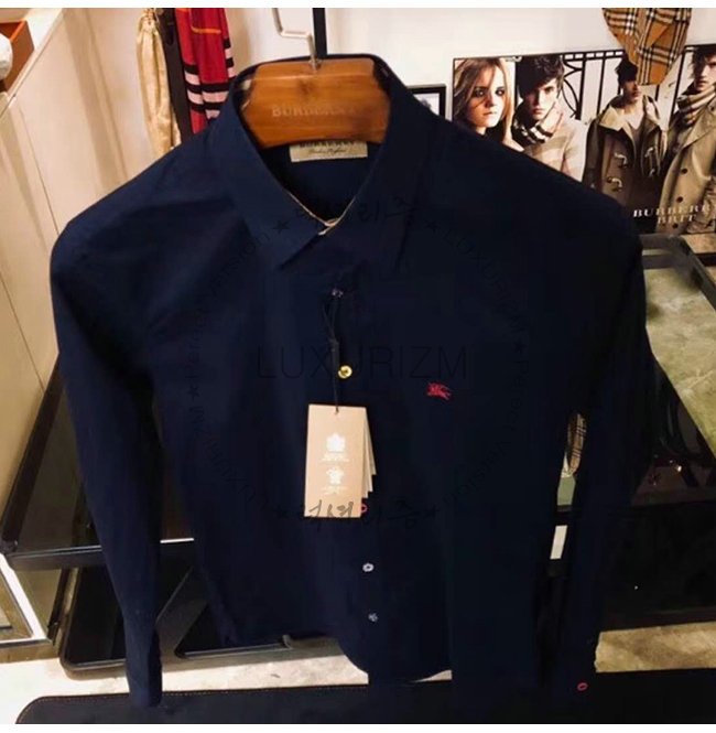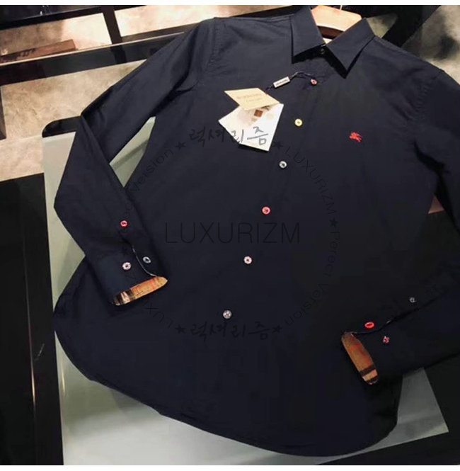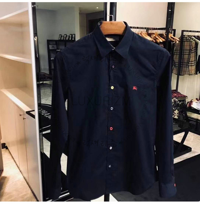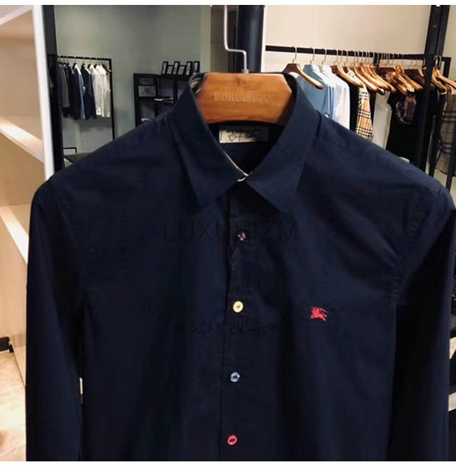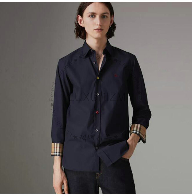 [스페셜오더]BURBERRY-80030831 버버리 컨트라스트 버튼 스트레치 네이비 코튼 셔츠
