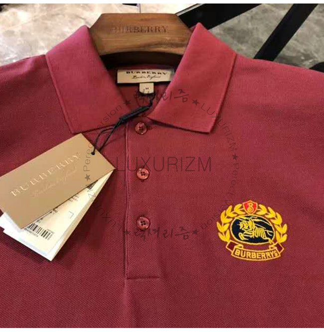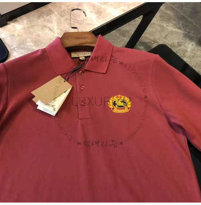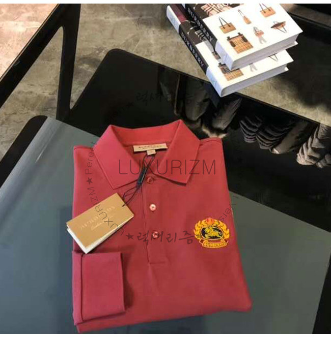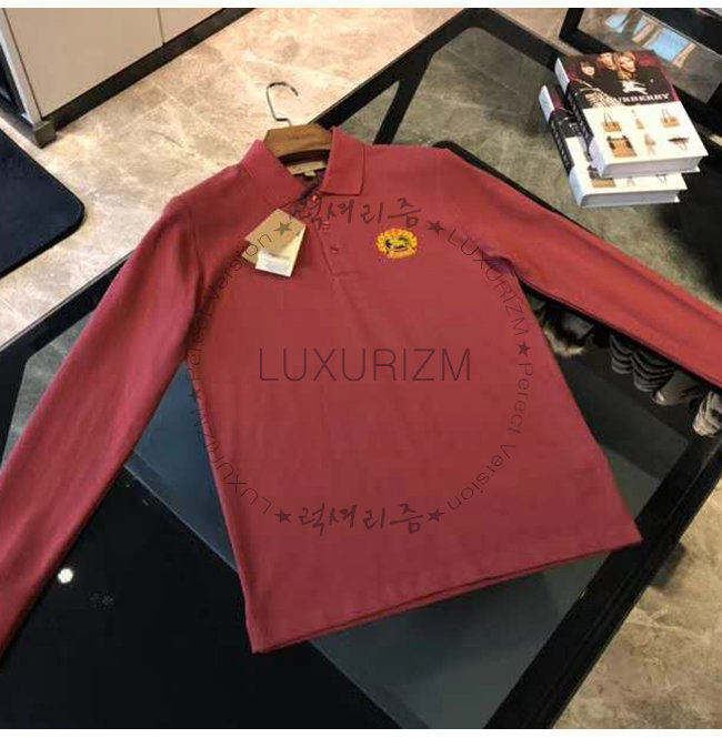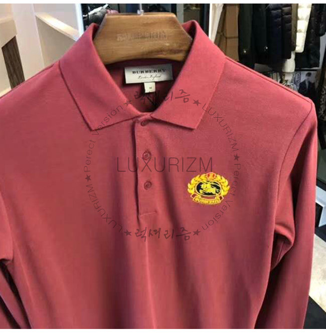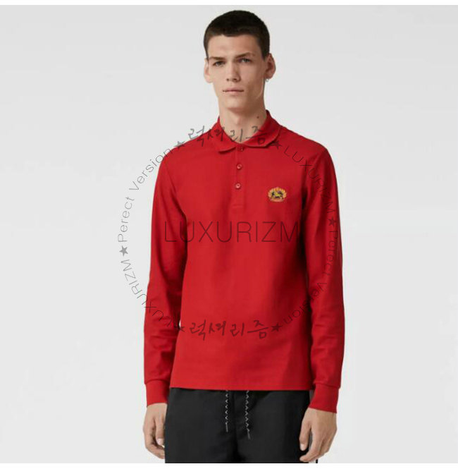 [스페셜오더]BURBERRY-80036001 버버리 레드 코튼 롱 슬리브 아카이브 로고 피케 폴로 셔츠