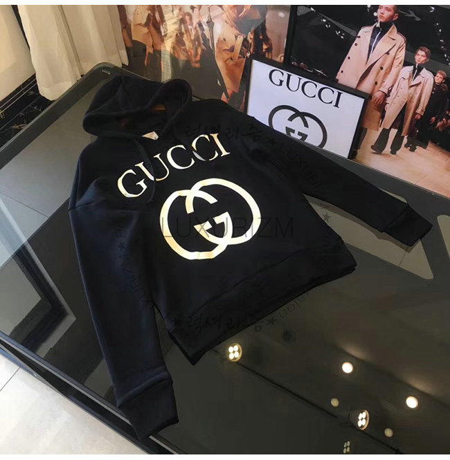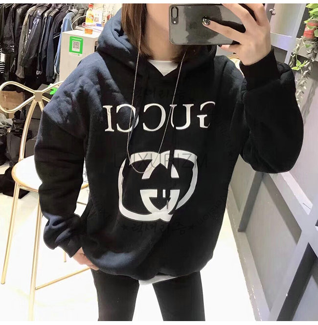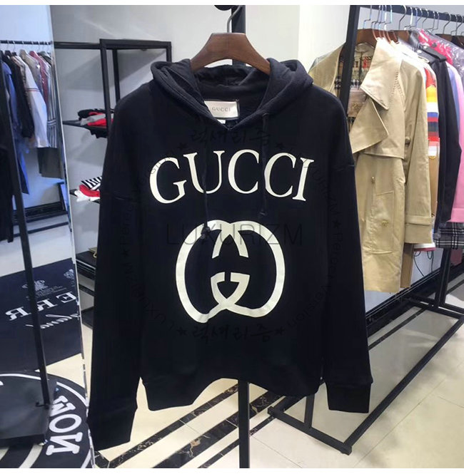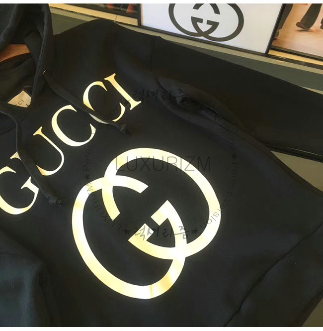 GUCCI-475374 1289 구찌 블랙 코튼 인터로킹 G 장식 후드 스웨트셔츠