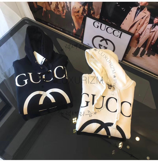 GUCCI-475374 9524 구찌 화이트 코튼 인터로킹 G 장식 후드 스웨트셔츠 가격 : 200,000원
