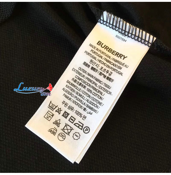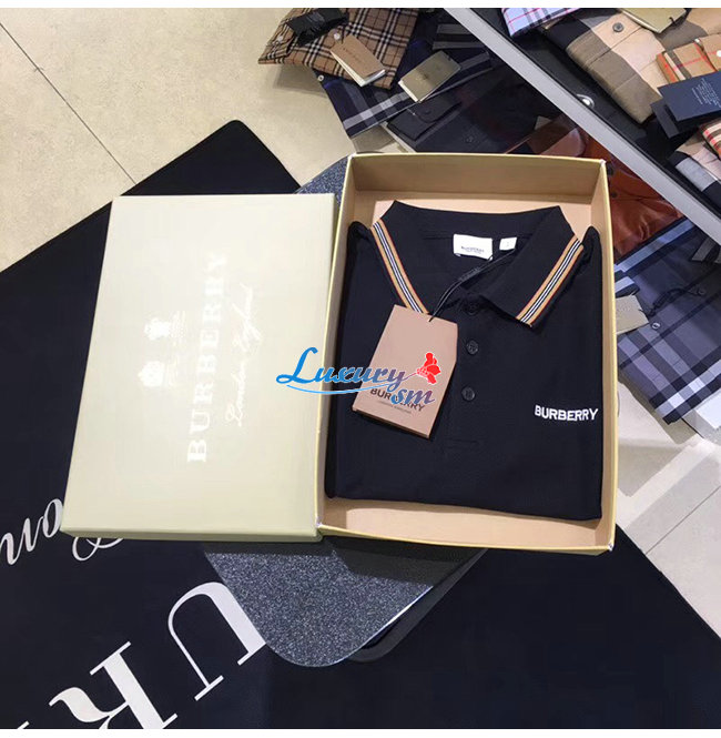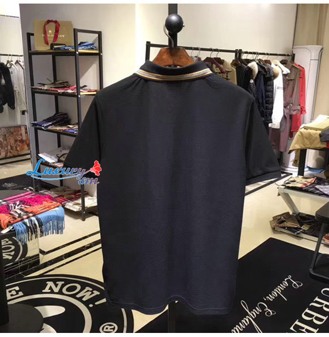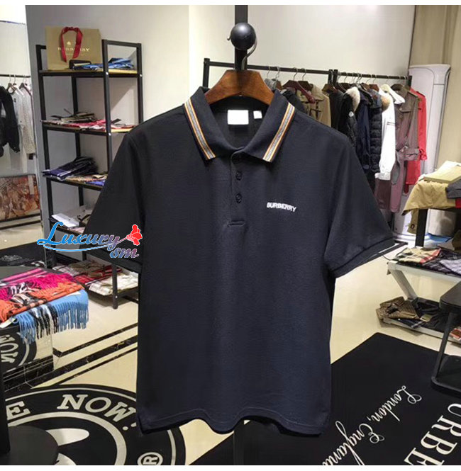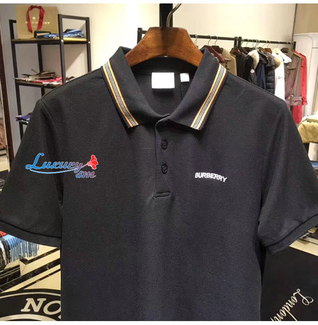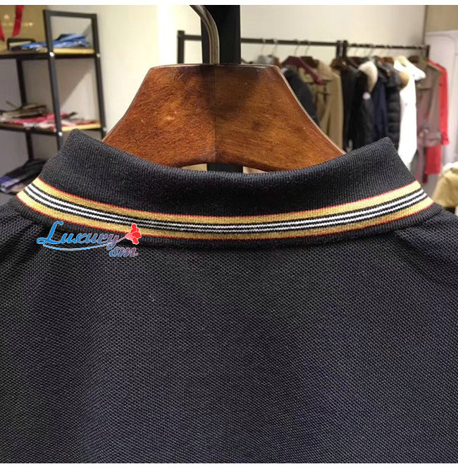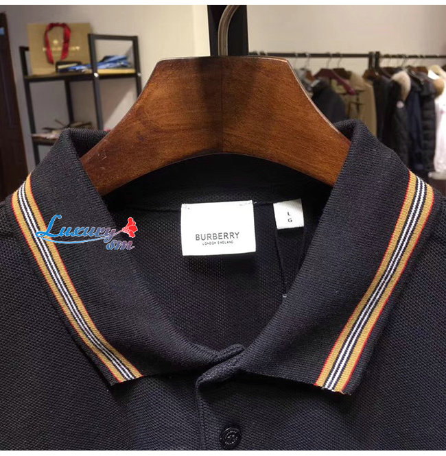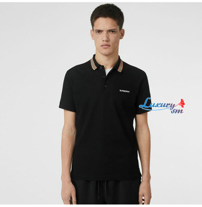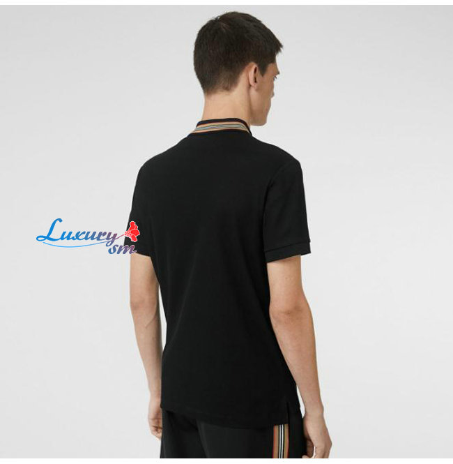 BURBERRY-80092801 버버리 블랙 아이콘 스트라이프 디테일 코튼 피케 폴로셔츠