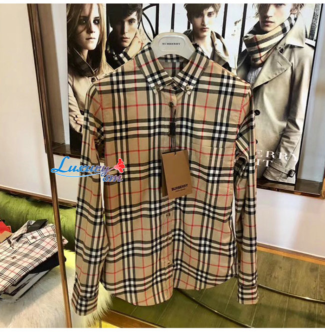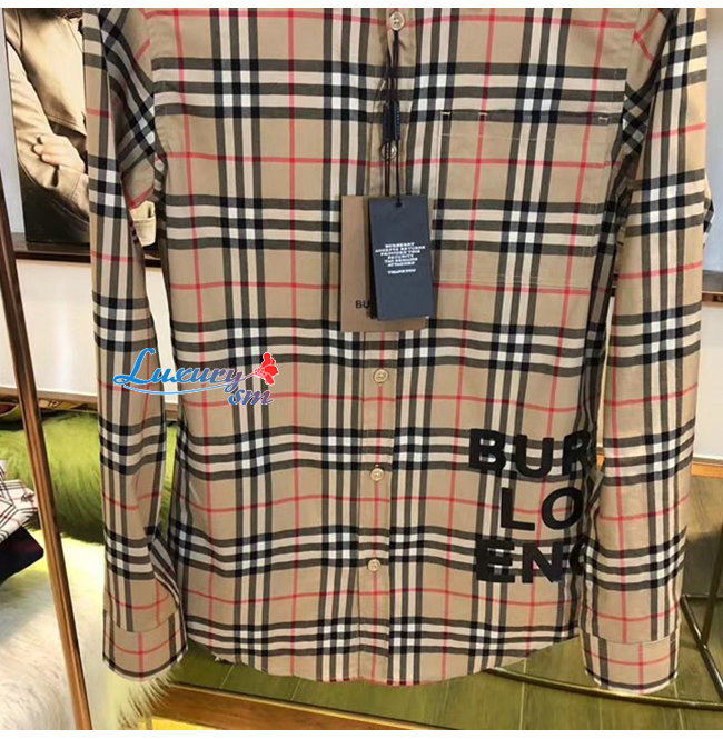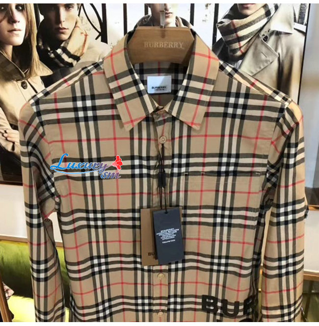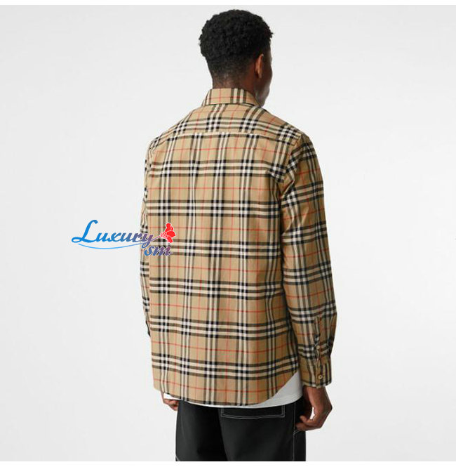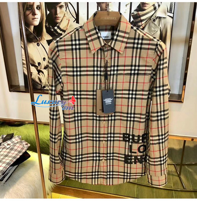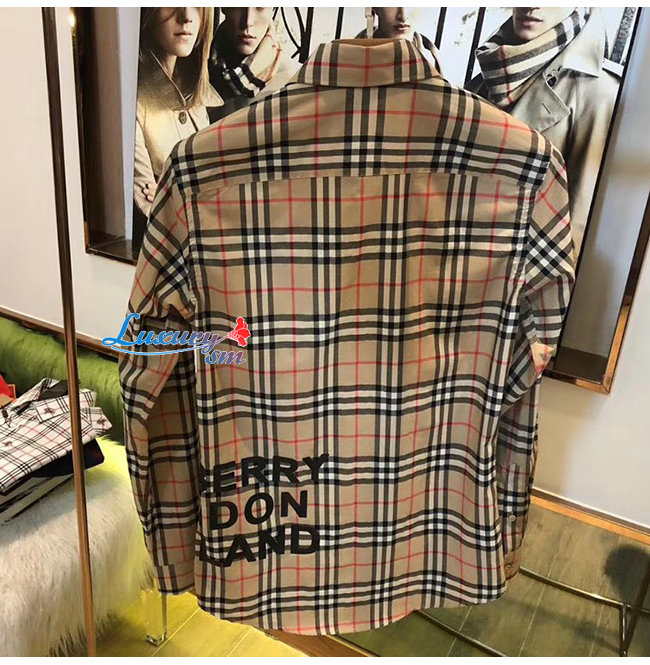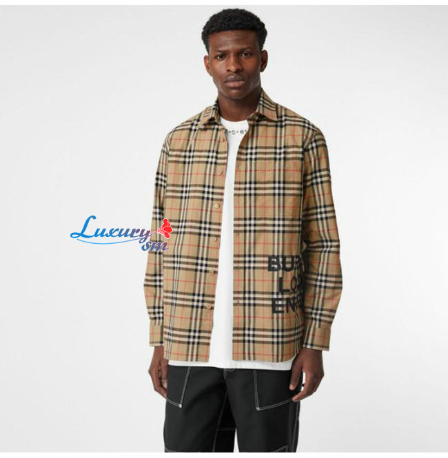 BURBERRY-80175671 버버리 로고 프린트 체크 코튼 오버사이즈 셔츠