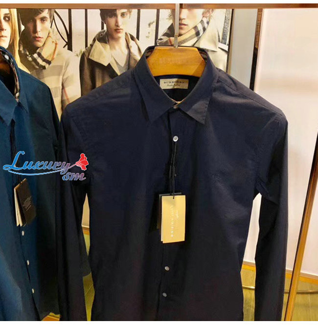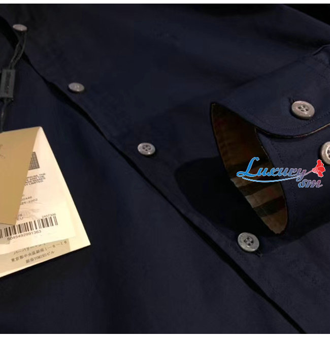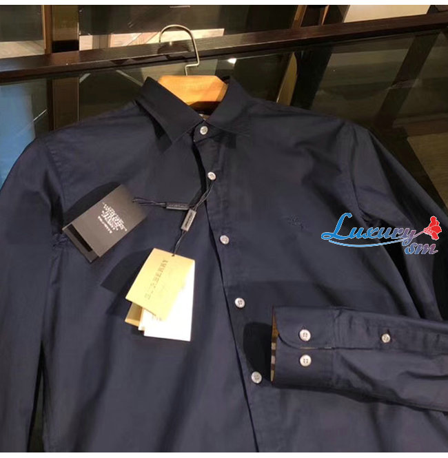 BURBERRY-80087051 버버리 네이비 코튼 스트레치 포플린 셔츠