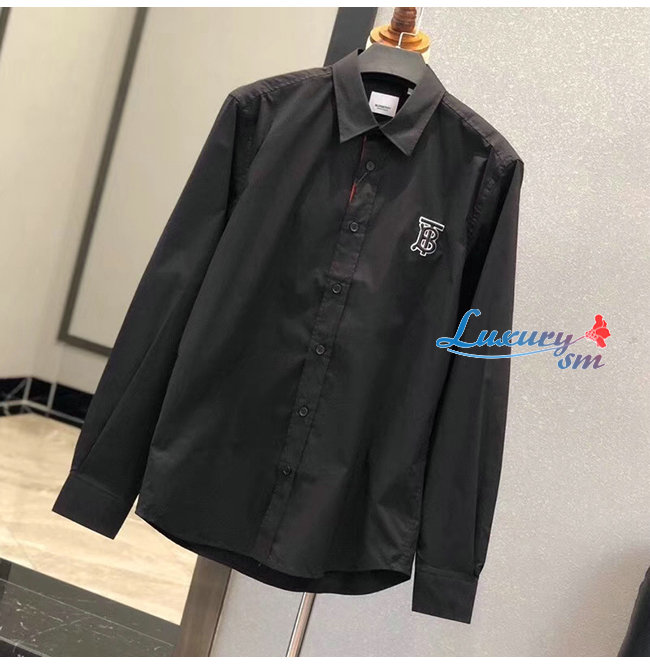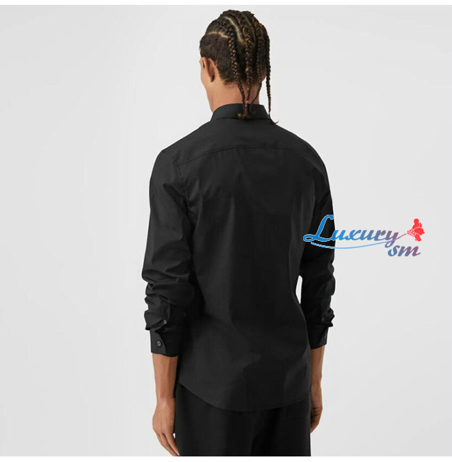 BURBERRY-80234631 버버리 블랙 모노그램 모티프 스트레치 코튼 포플린 셔츠
