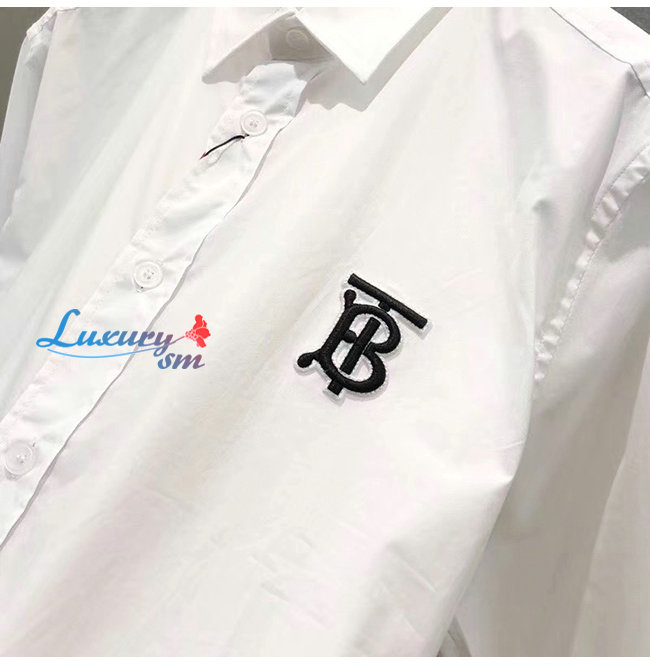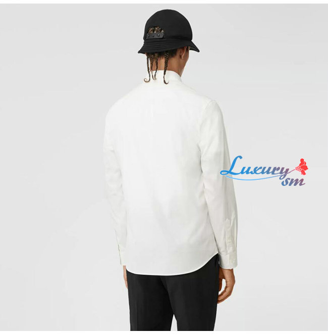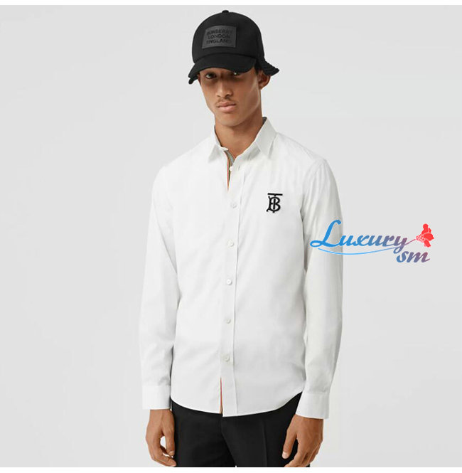 BURBERRY-80234601 버버리 화이트 모노그램 모티프 스트레치 코튼 포플린 셔츠