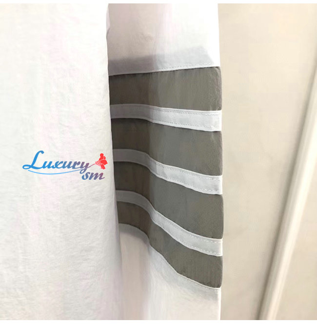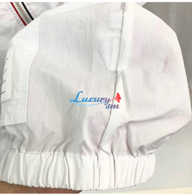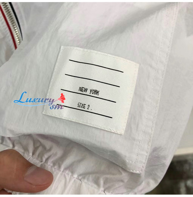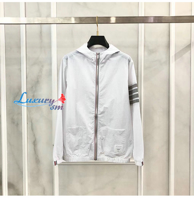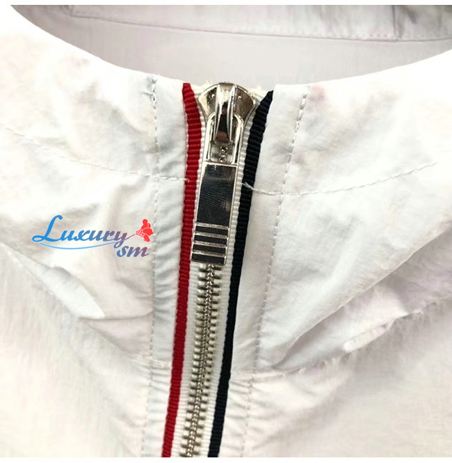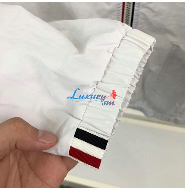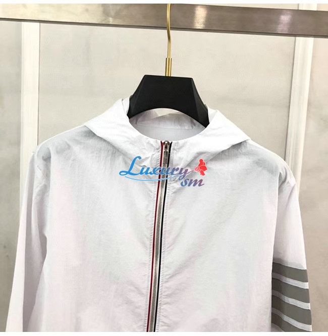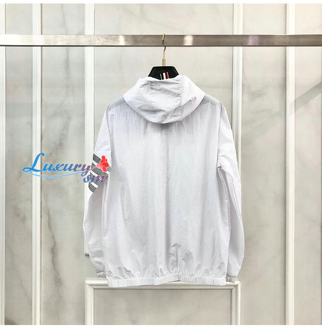 THOM BROWNE-07307 톰 브라운 화이트 스트라이프 장식 바람막이 후드 쟈켓 남성용
