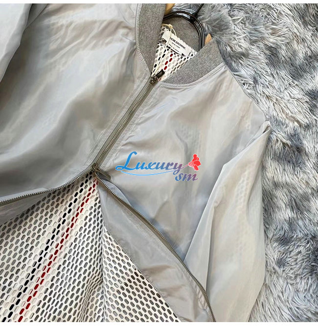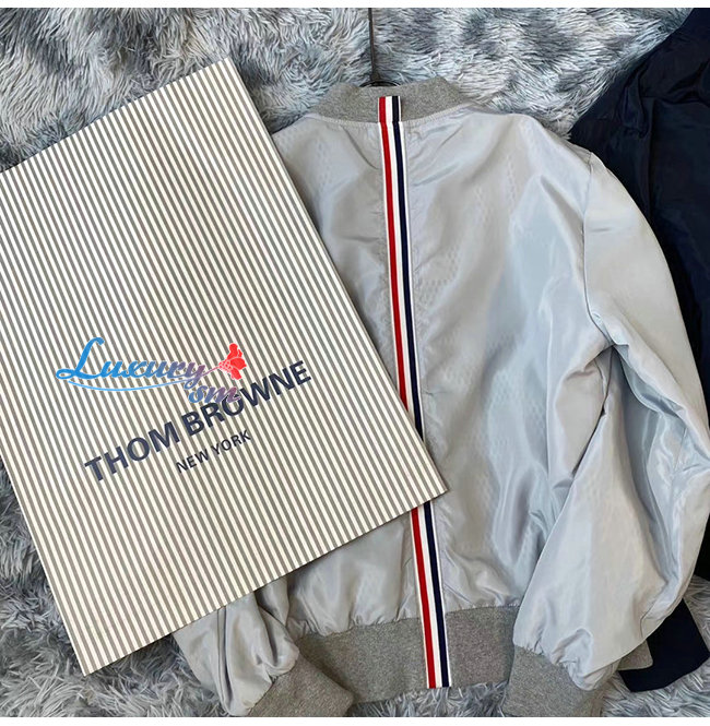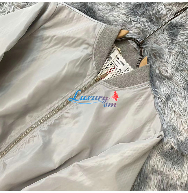 THOM BROWNE-09204 톰 브라운 그레이 나일론 바람막이 봄버 쟈켓 남성용