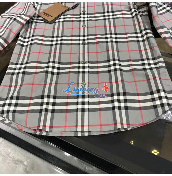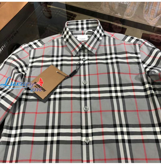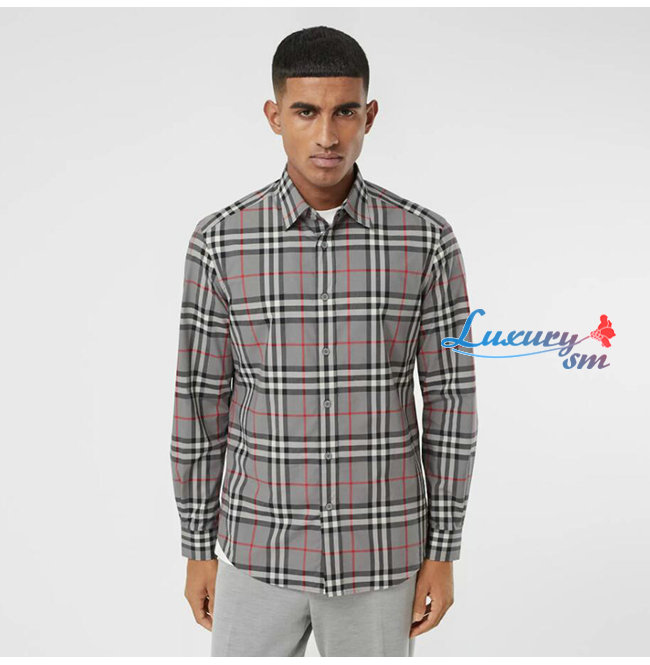 BURBERRY-80288861 버버리 스톰 그레이 멜란지 체크 코튼 포플린 셔츠