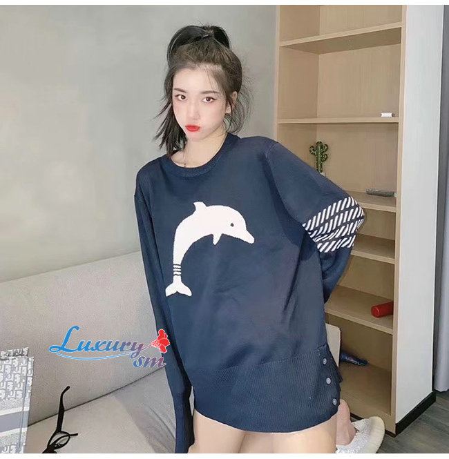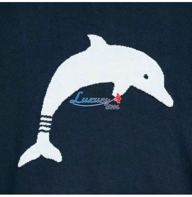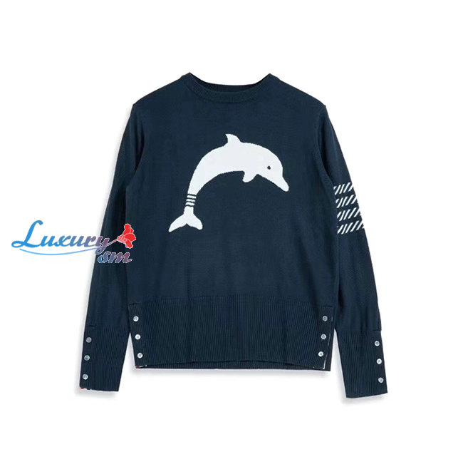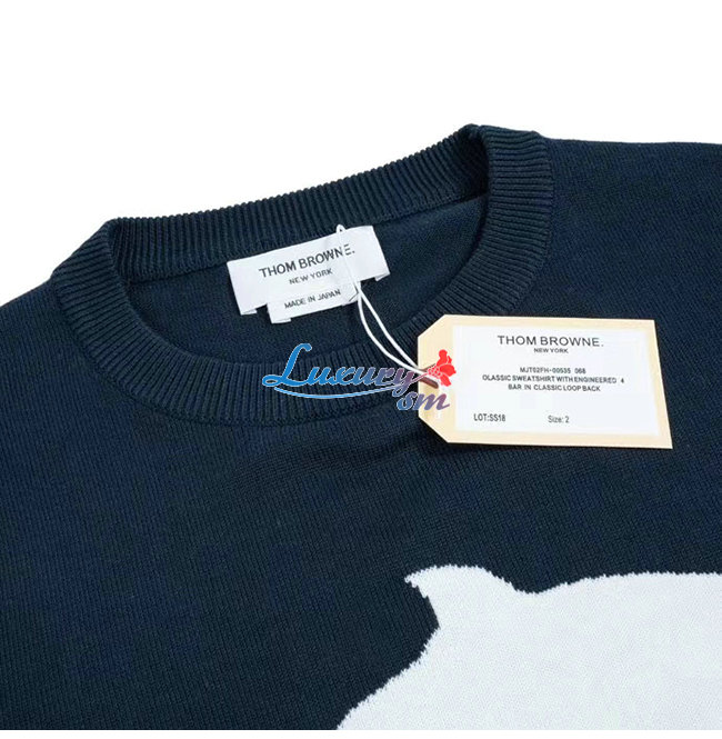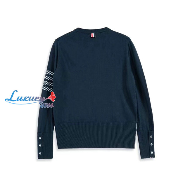 THOM BROWNE-10158 톰 브라운 네이비 캐시미어 프린트 장식 스웨터 남여공용