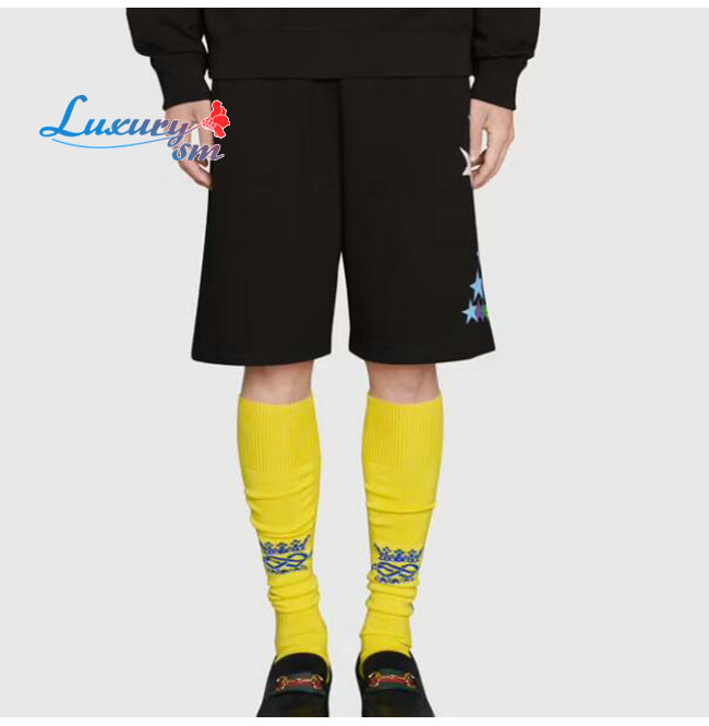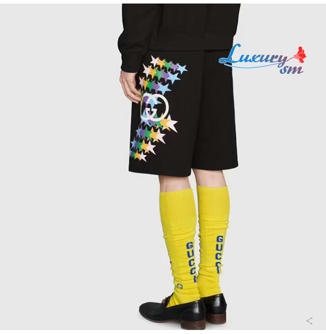 GUCCI-663249 1082 구찌 블랙 코튼 인터로킹 G 스타 플래쉬 프린트 스웨트쇼츠 남성용