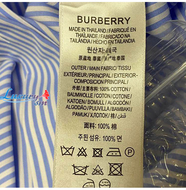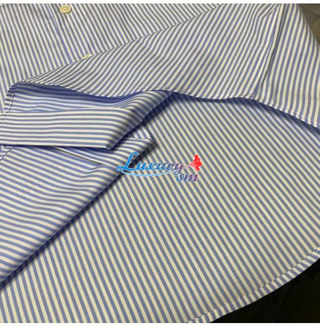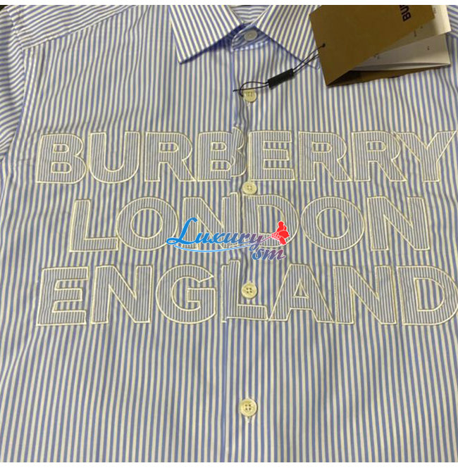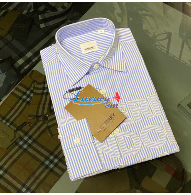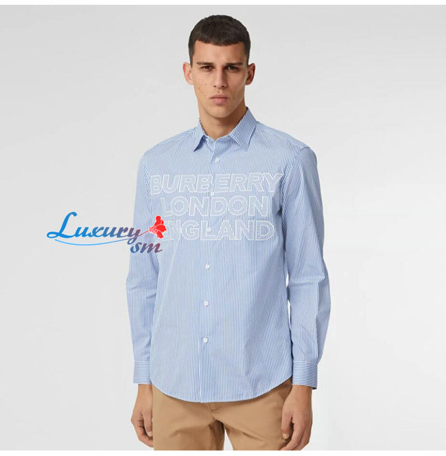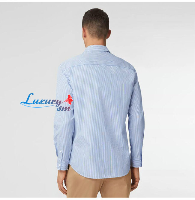 BURBERRY-80391091 버버리 블루 로고 아플리케 스트라이프 포플린 셔츠