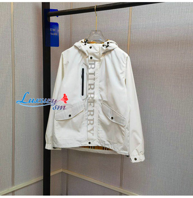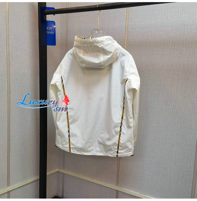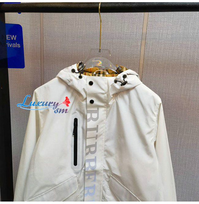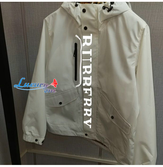 BURBERRY-072510 버버리 화이트 나일론 프린트 장식 야광 바람막이 후드 쟈켓 남성용