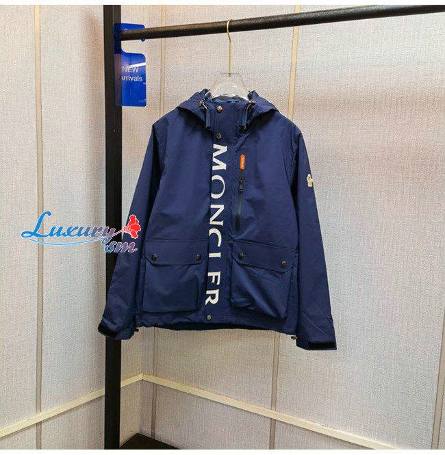 MONCLER-07257 몽클레어 네이비 나일론 MONCLER 프린트 장식 바람막이 후드 쟈켓 남성용