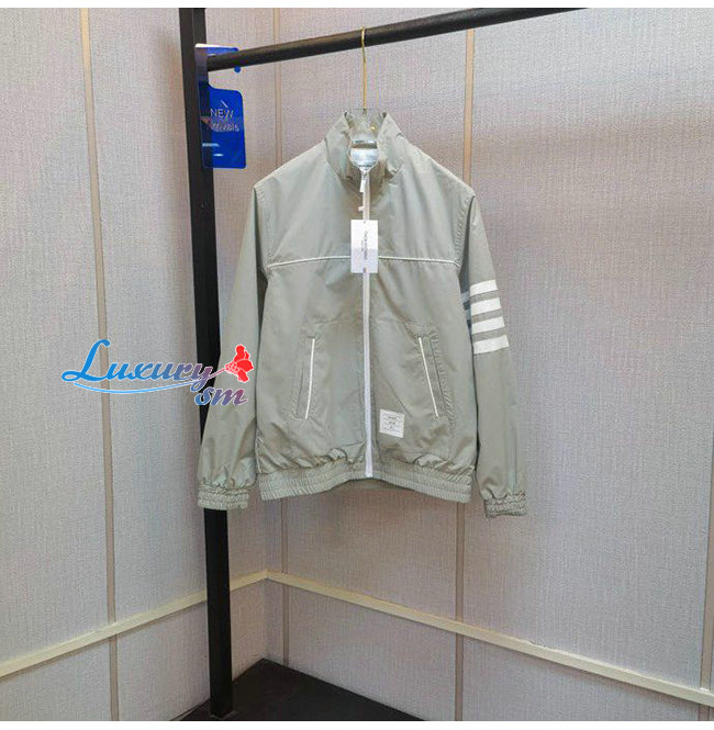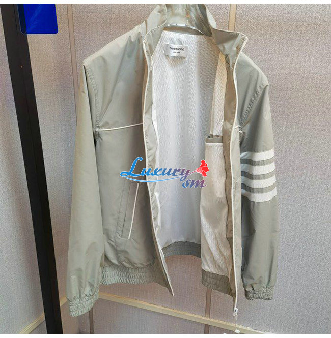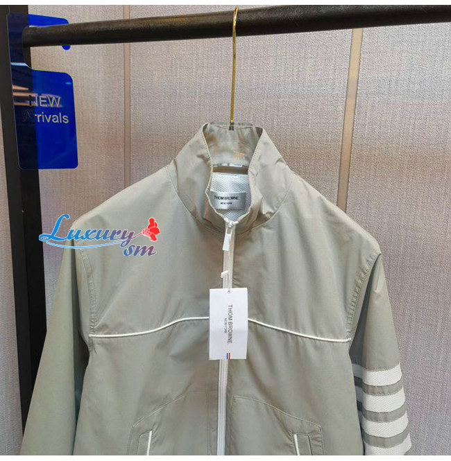 THOM BROWNE-072113 톰 브라운 그레이 나일론 스트라이프 장식 바람막이 쟈켓 남성용