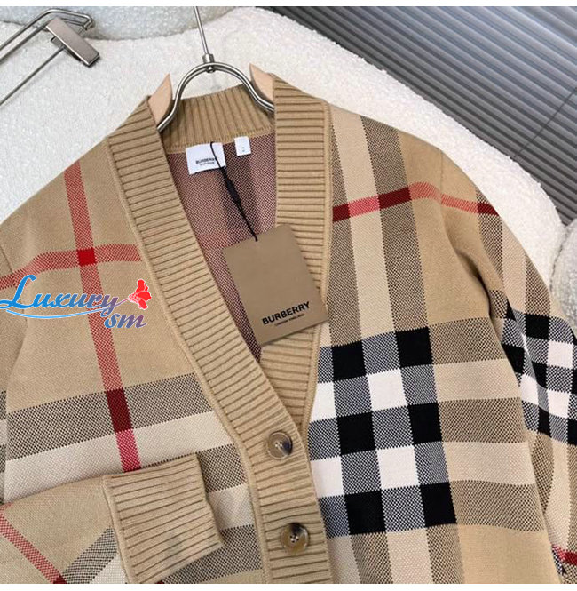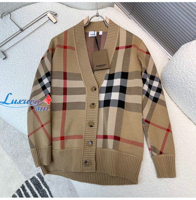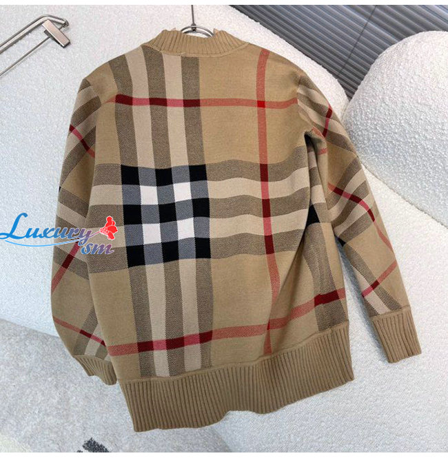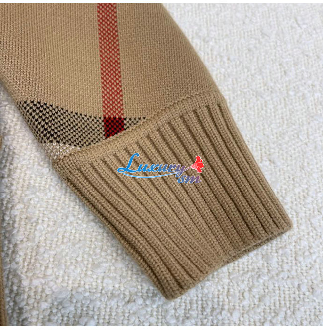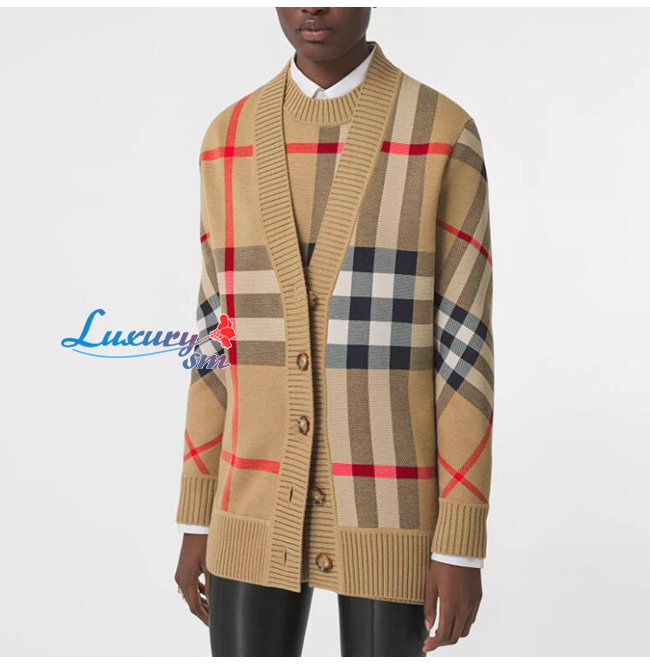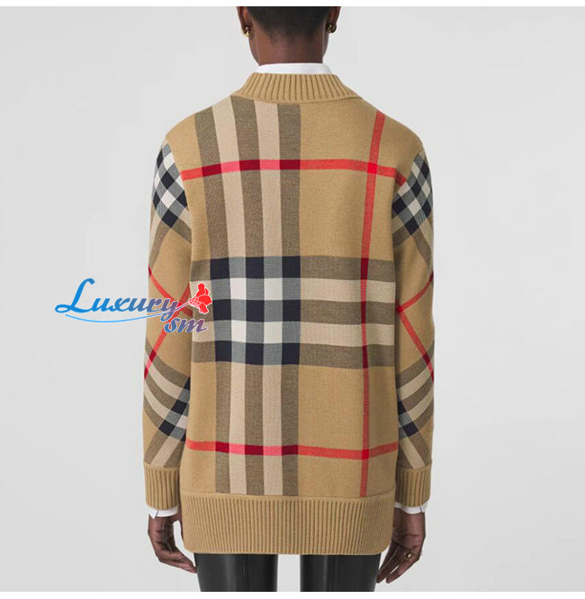 BURBERRY-80391531 버버리 베이지 체크 테크니컬 울 자카드 카디건 남여공용