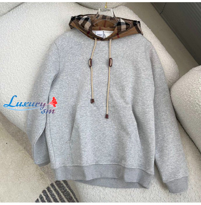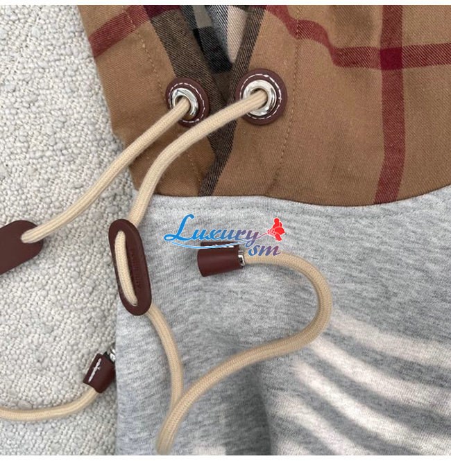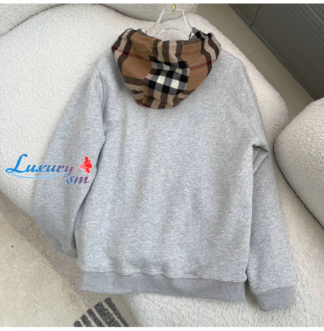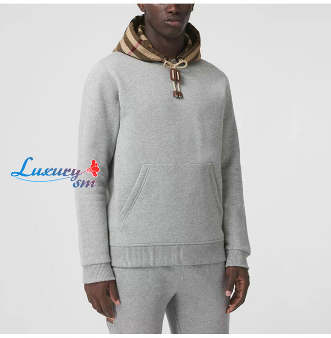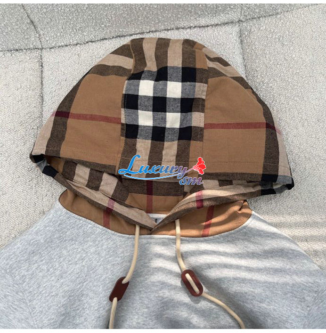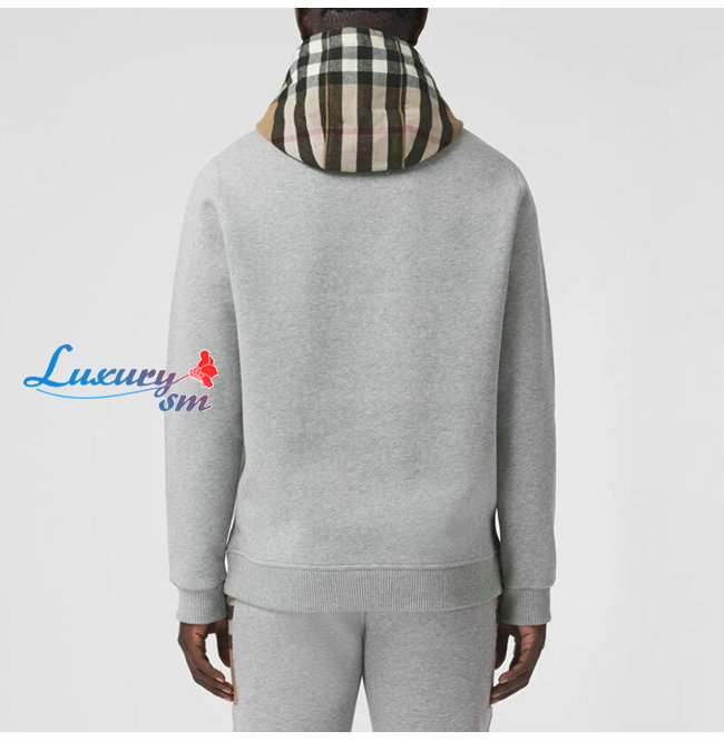 BURBERRY-80450051 버버리 그레이 체크 후드 코튼 블렌드 후디