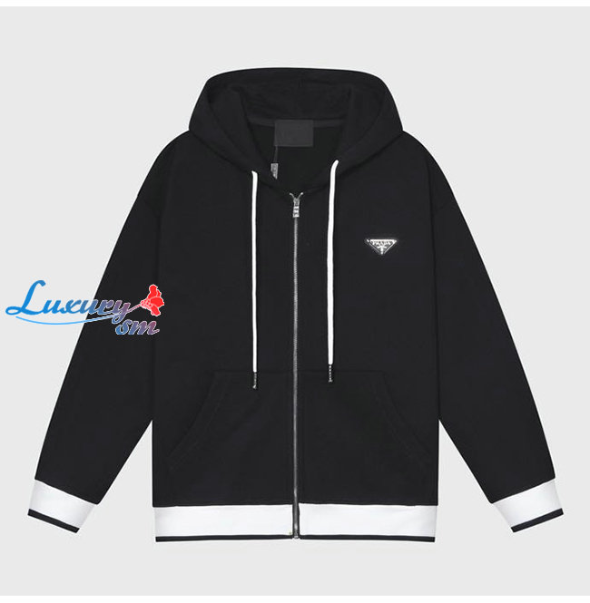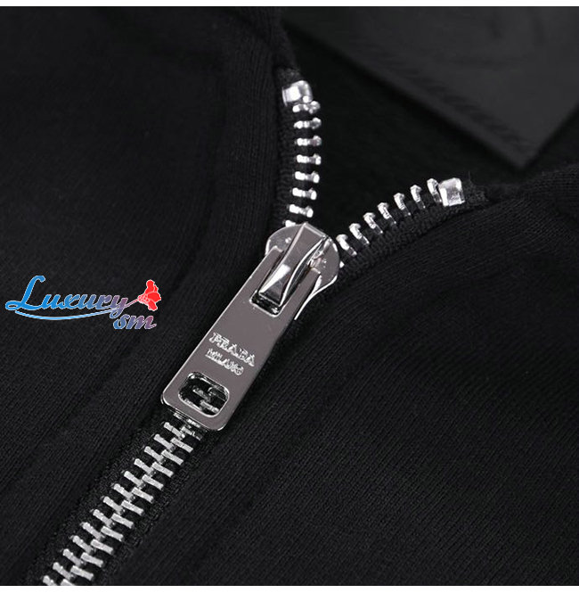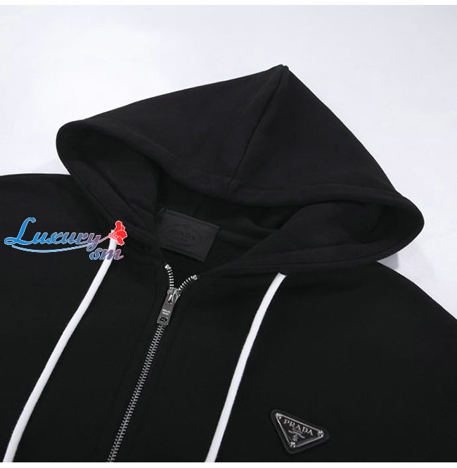 PRADA-12125 프라다 블랙/화이트 코튼 트라이앵글 로고 후드 쟈켓 남성용