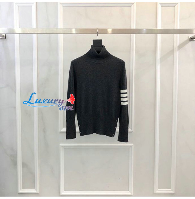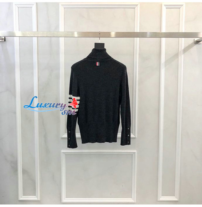 THOM BROWNE-12097 톰 브라운 블랙 캐시미어 목폴라 티셔츠 남여공용
