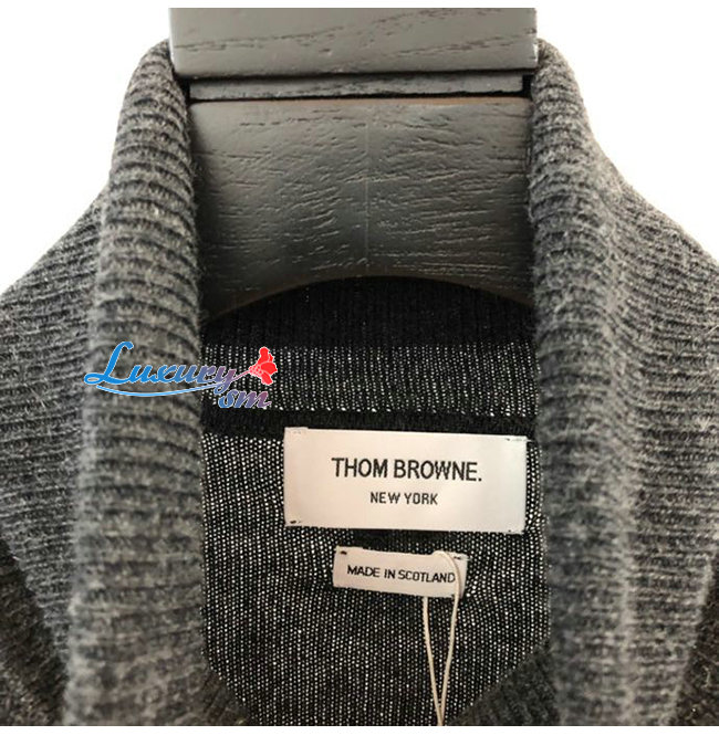 THOM BROWNE-12099 톰 브라운 다크 그레이 캐시미어 목폴라 티셔츠 남여공용