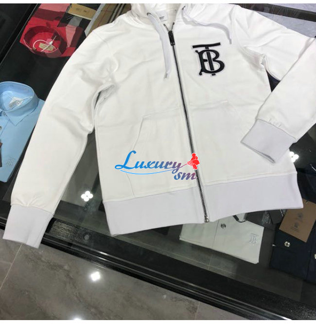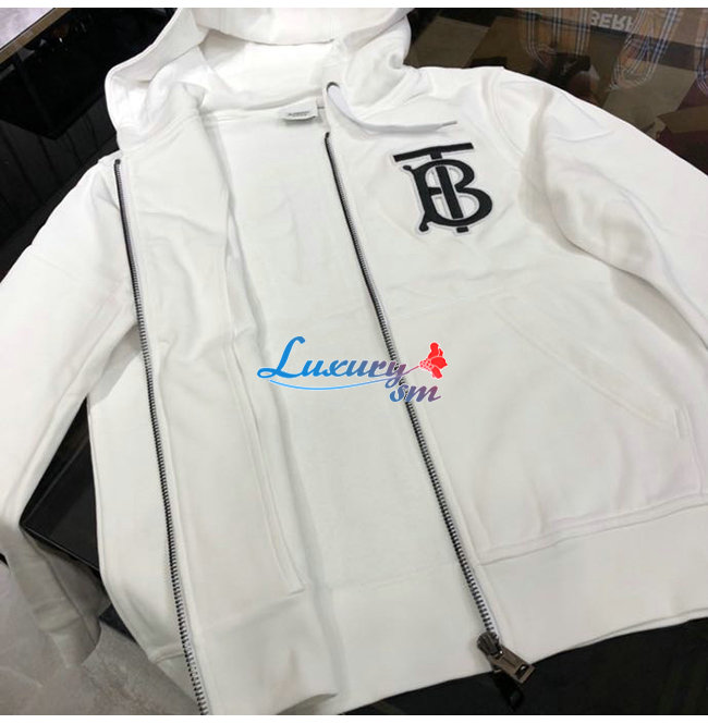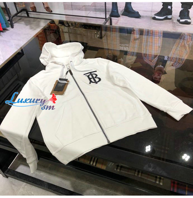BURBERRY-02137 버버리 화이트 코튼 TB 로고 아플리케 장식 후드 쟈켓 남성용