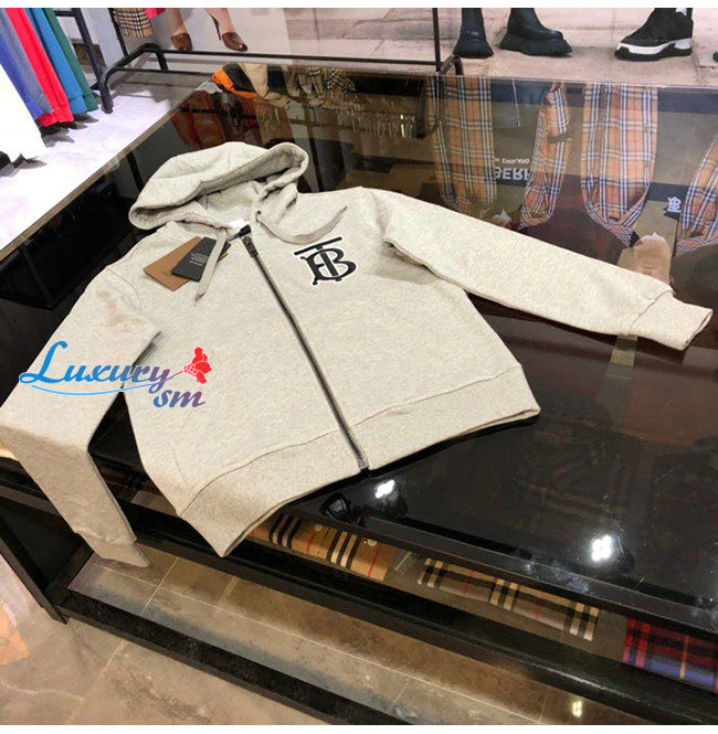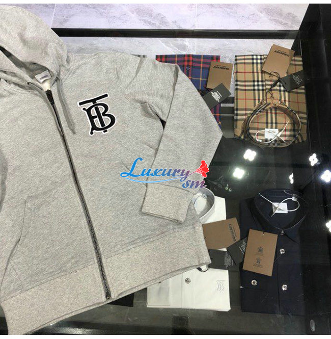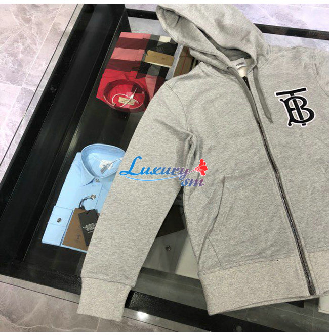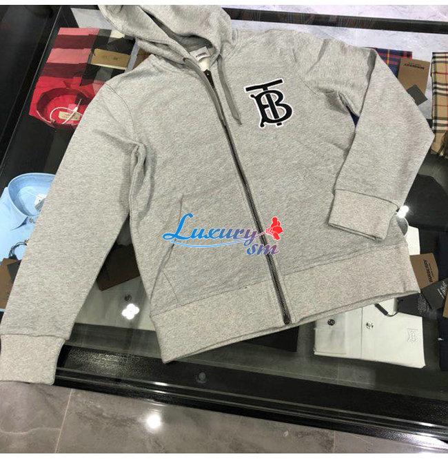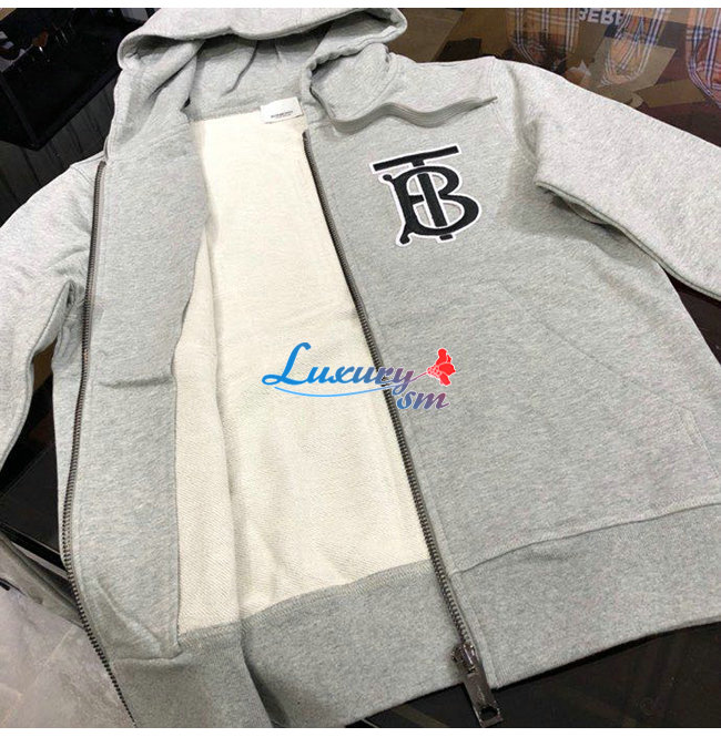 BURBERRY-02138 버버리 그레이 코튼 TB 로고 아플리케 장식 후드 쟈켓 남성용