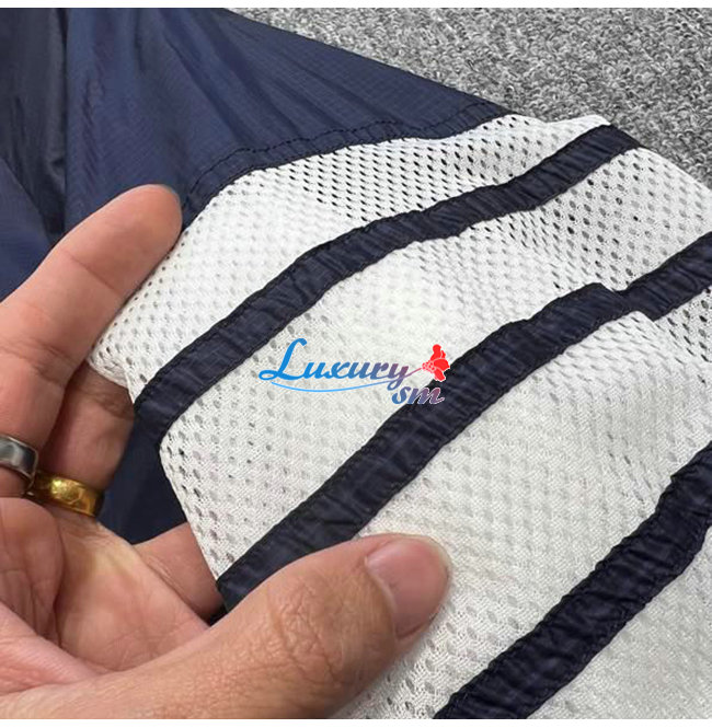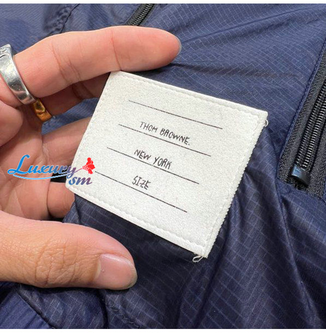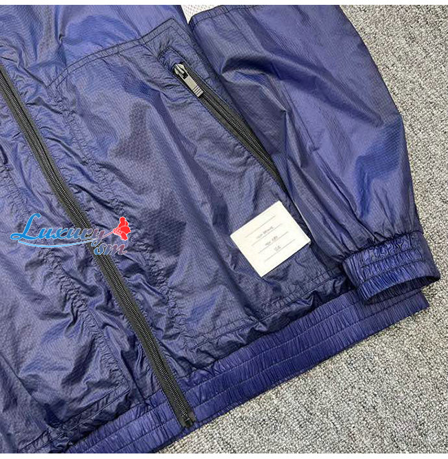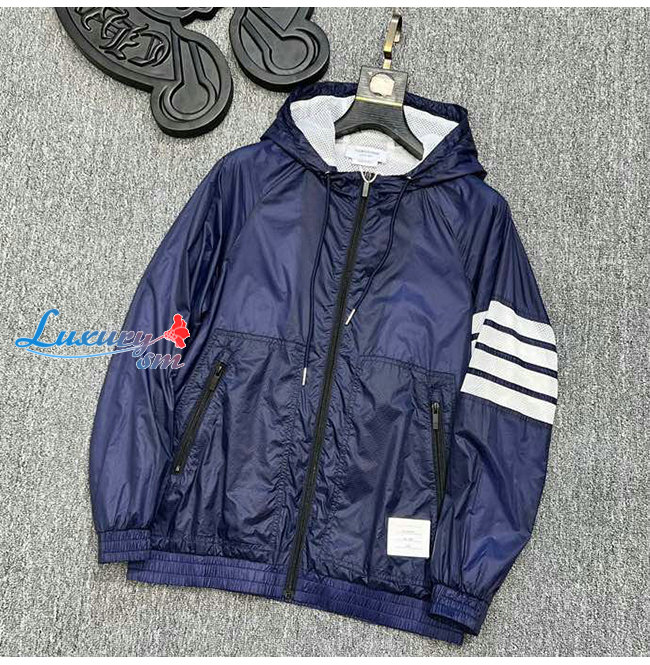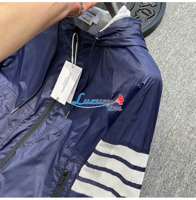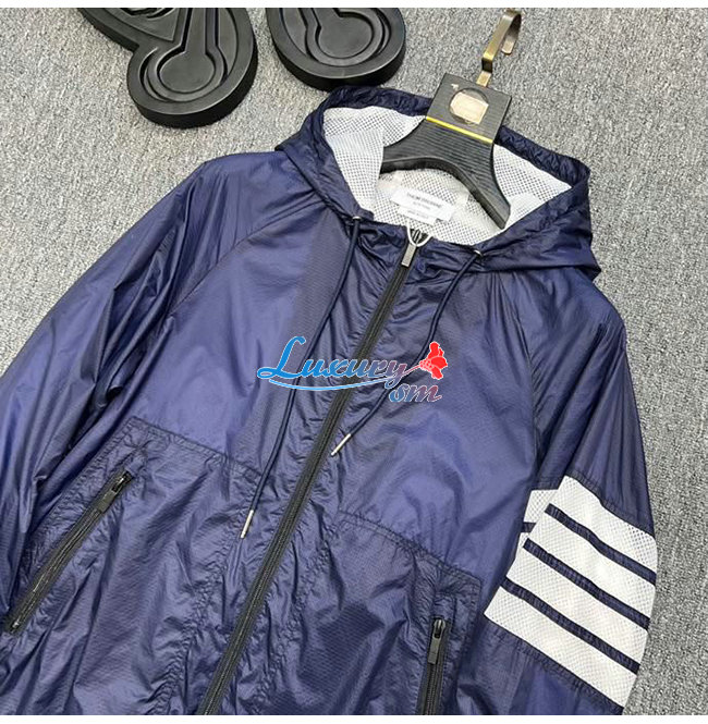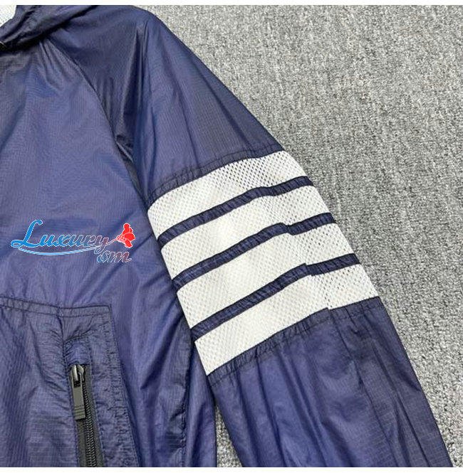 THOM BROWNE-02112 톰 브라운 네이비 스트라이프 장식 바람막이 후드 쟈켓 남성용
