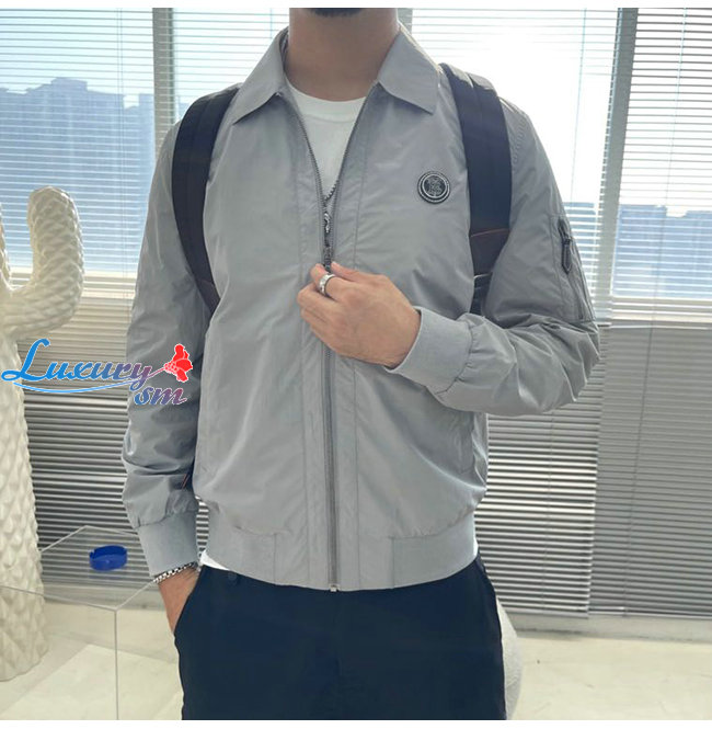 BURBERRY-02212 버버리 그레이 TB 패치 장식 바람막이 쟈켓 남성용