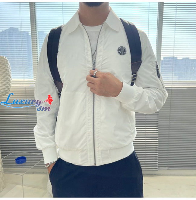BURBERRY-02214 버버리 화이트 TB 패치 장식 바람막이 쟈켓 남성용