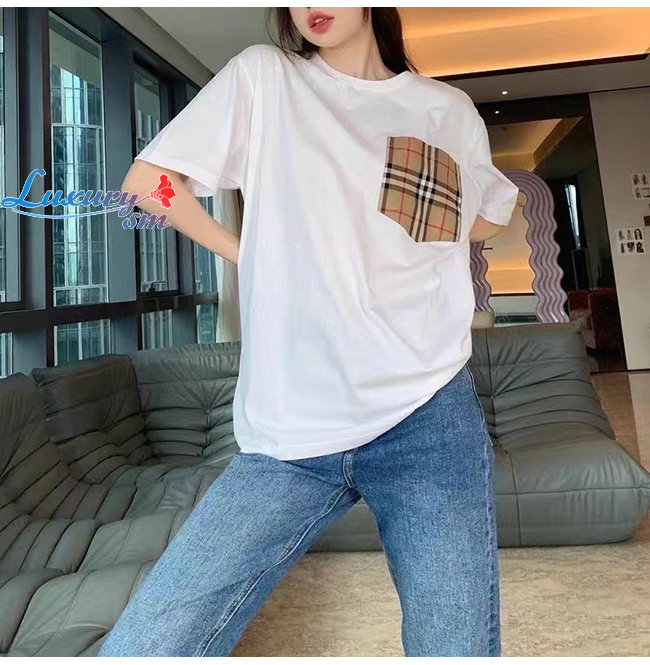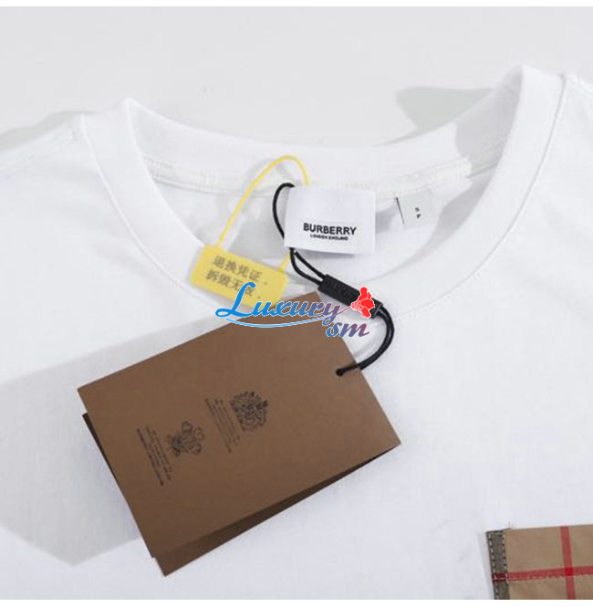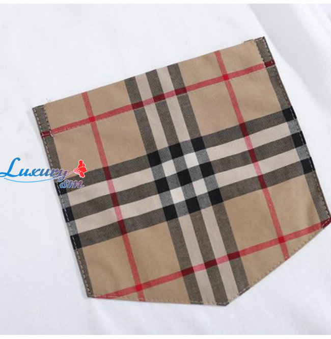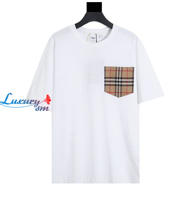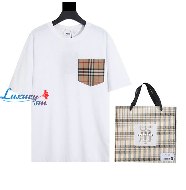 BURBER**-022618 버버리 화이트 체크 무늬 포켓 티셔츠 남여공용