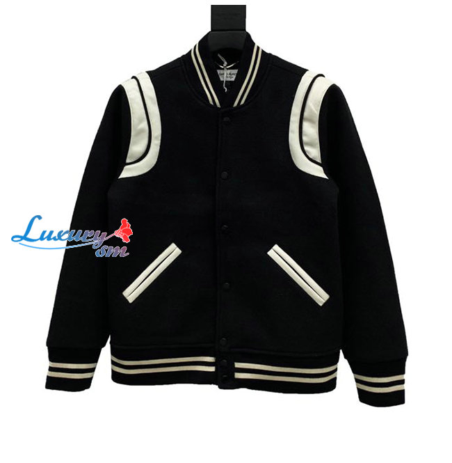 SAINT LAURE**-022520 생 로랑 블랙/화이트 베이스볼 재킷 남여공용
