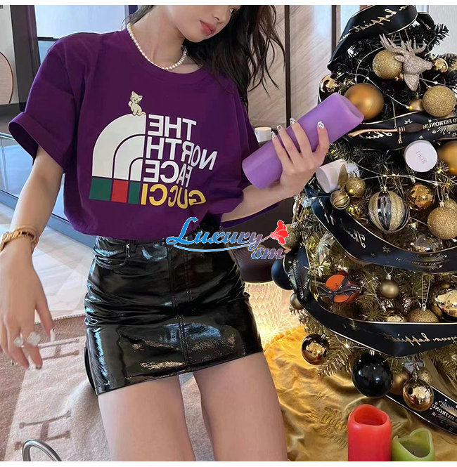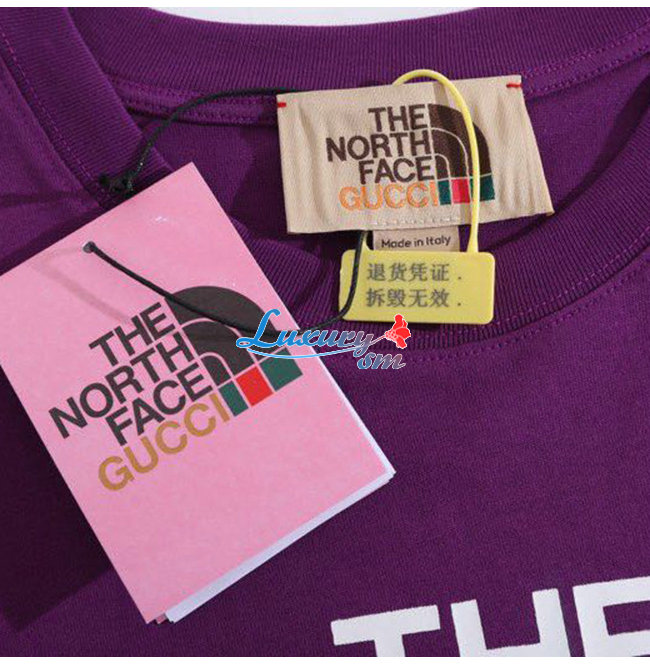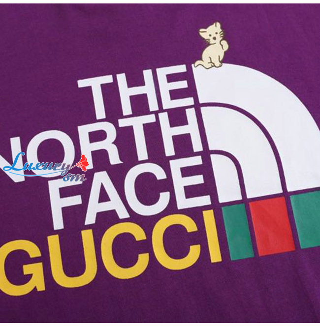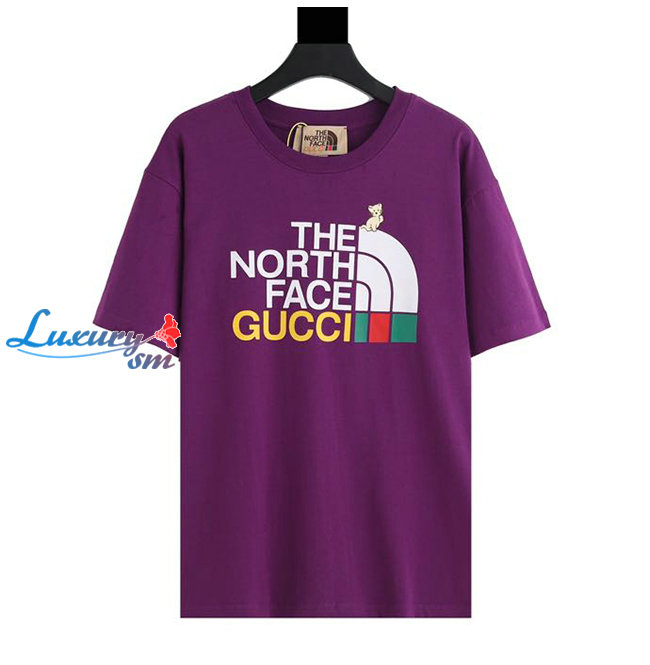 GUCC*-02226 구찌 퍼플 구찌 X 노스페이스 콜라보 프린트 장식 티셔츠 남여공용
