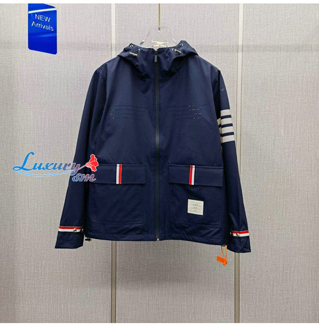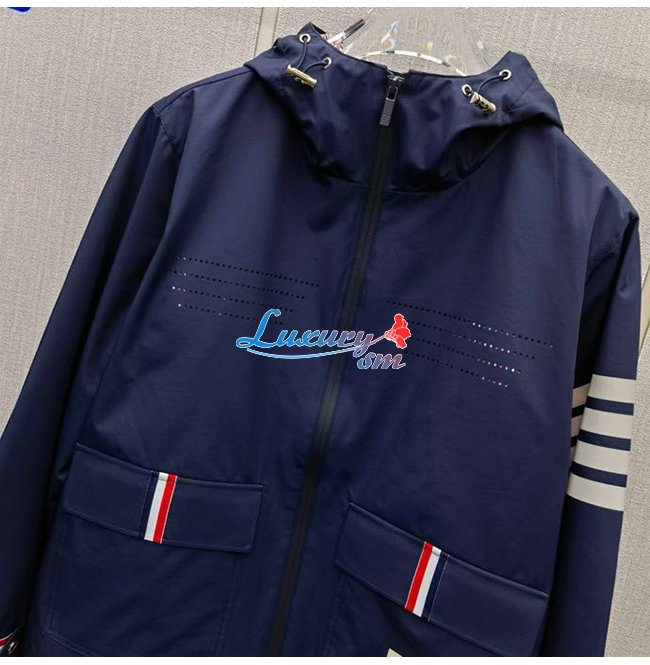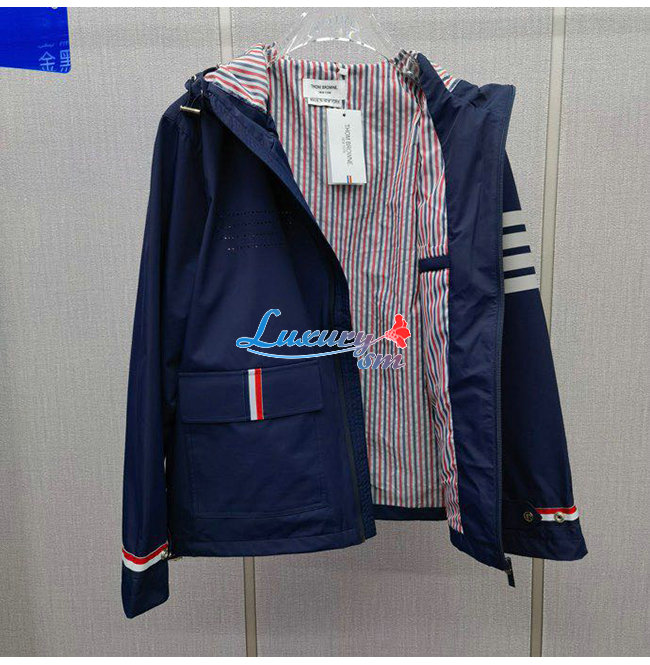 THOM BROW**-031114 톰 브라운 네이비 스트라이프 장식 바람막이 후드 재킷 남성용