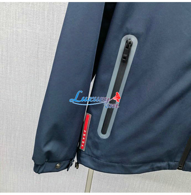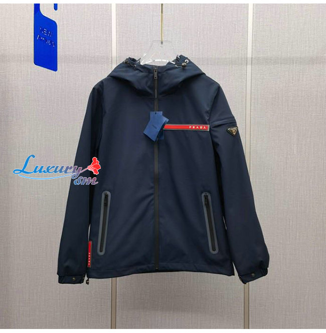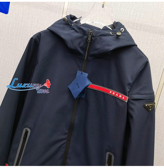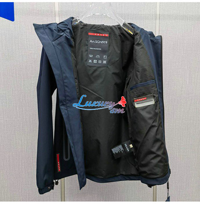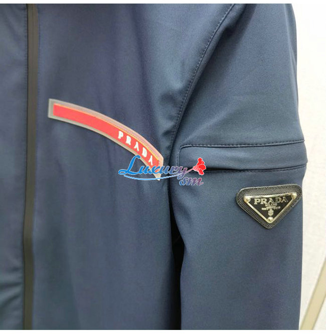 PRAD*-031115 프라다 네이비 트라이앵글 로고 바람막이 후드 재킷 남성용