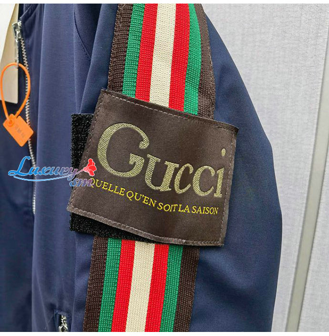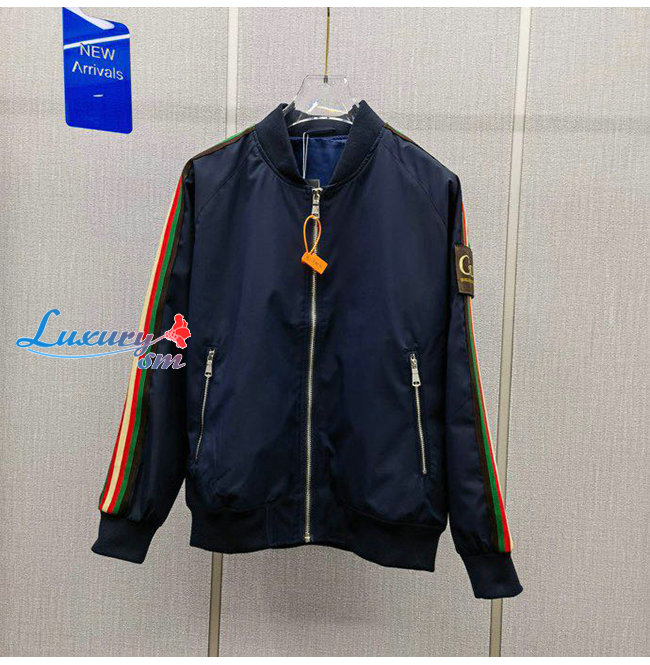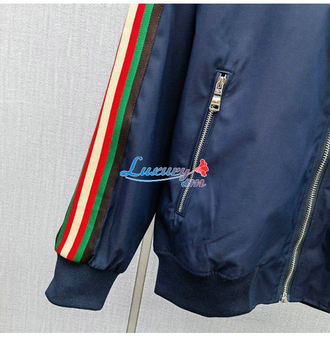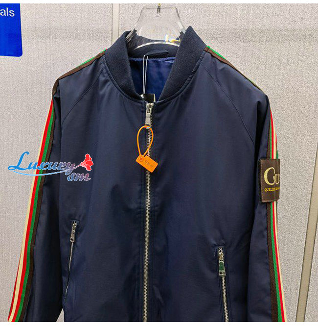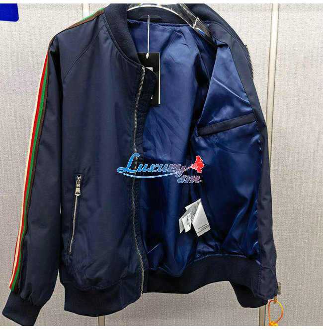 GUCC*-03112 구찌 네이비 스트라이프 장식 베이스볼 재킷 남성용