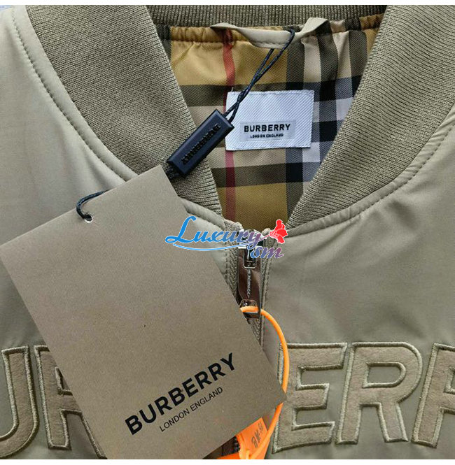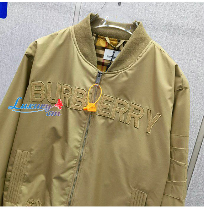BURBER**-03116 버버리 베이지 아플리케 장식 봄버 재킷 남성용