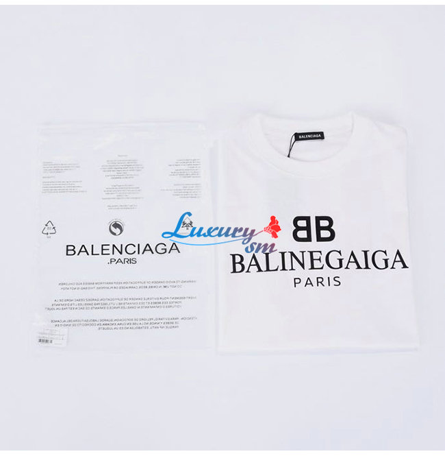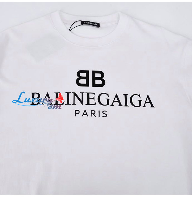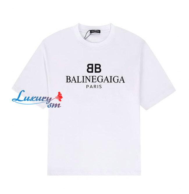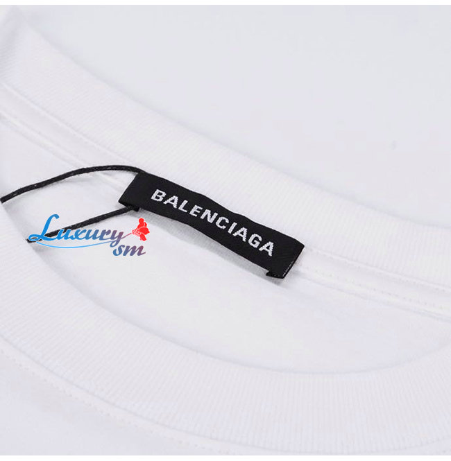 BALENCIA**-03069 발렌시아가 화이트 프린트 장식 티셔츠 남여공용