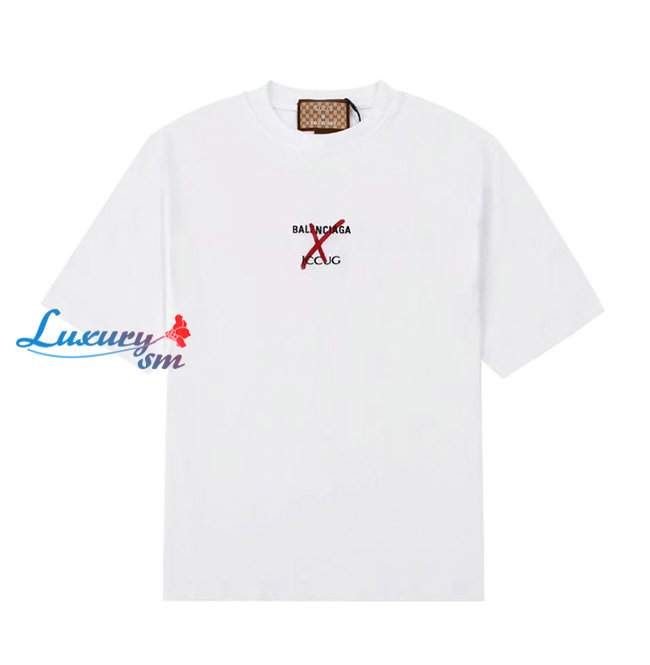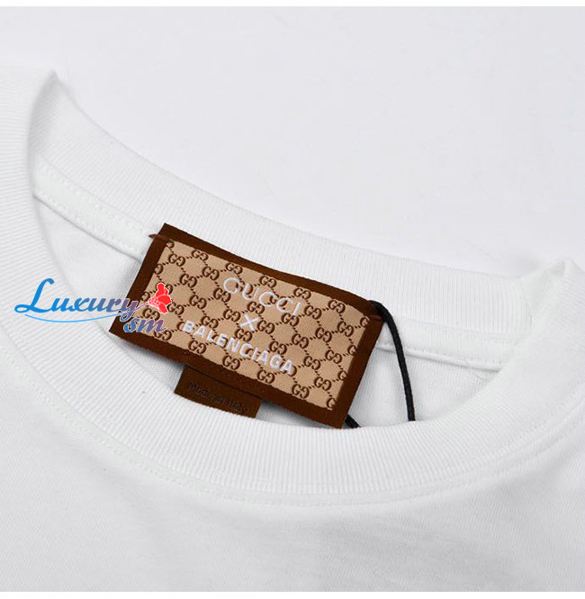 GUCC*-031619 구찌 화이트 구찌 X 발렌시아가 콜라보 프린트 장식 티셔츠 남여공용