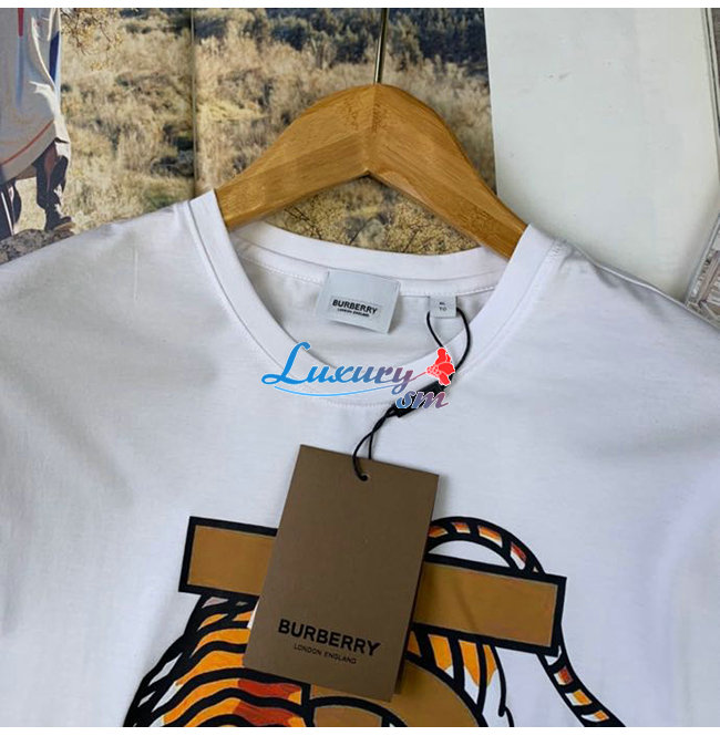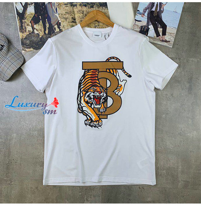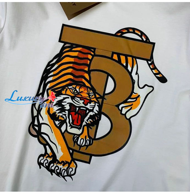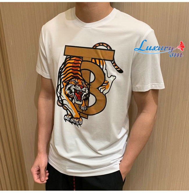 BURBER**-031520 버버리 화이트 타이거 프린트 장식 티셔츠 남성용