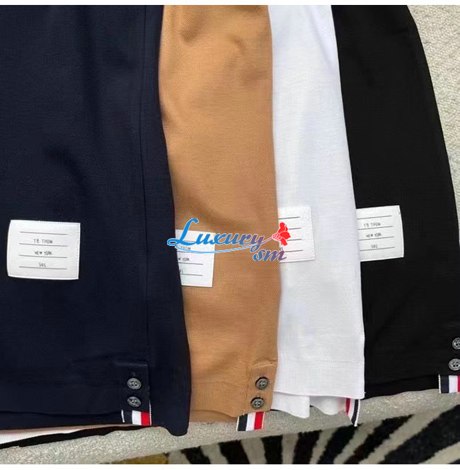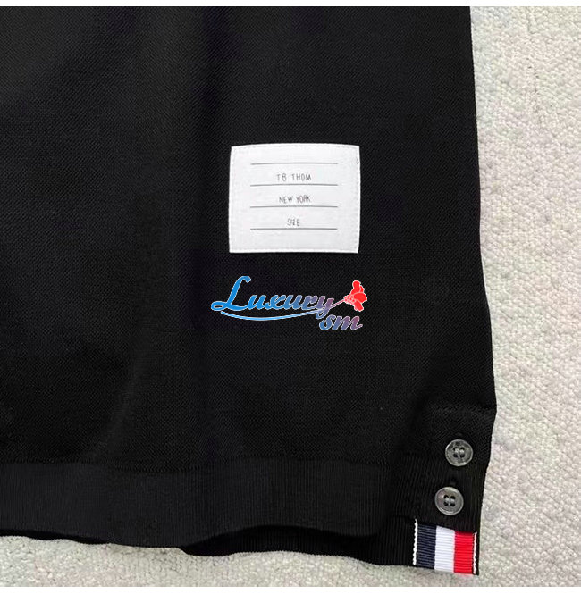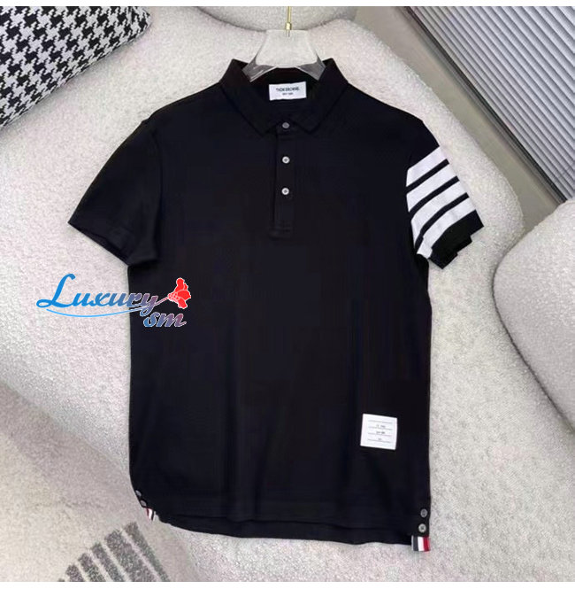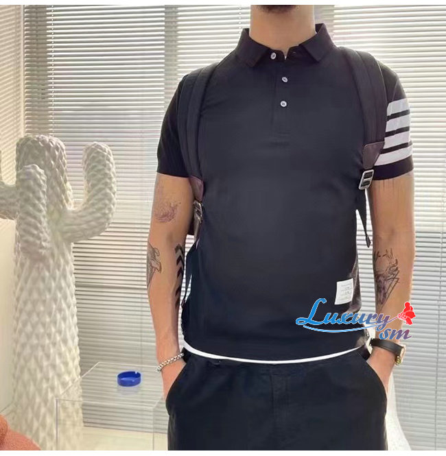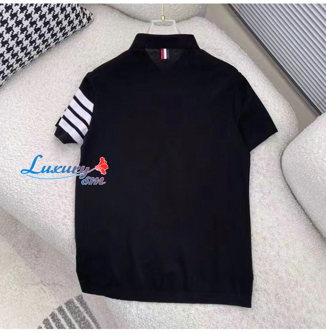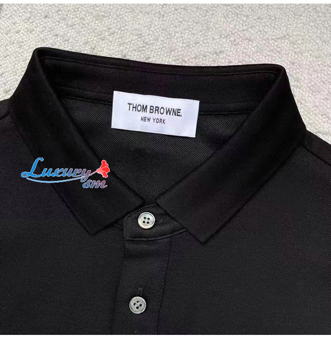 THOM BROW**-031910 톰 브라운 블랙 스트라이프 장식 폴로 티셔츠 남성용