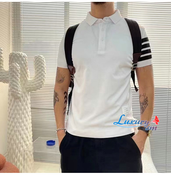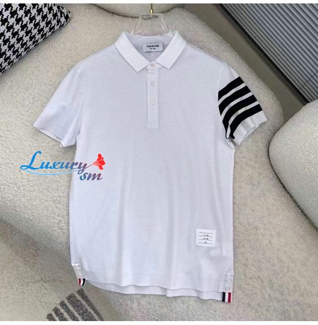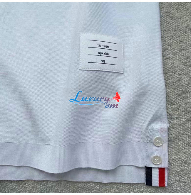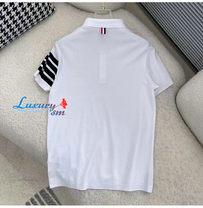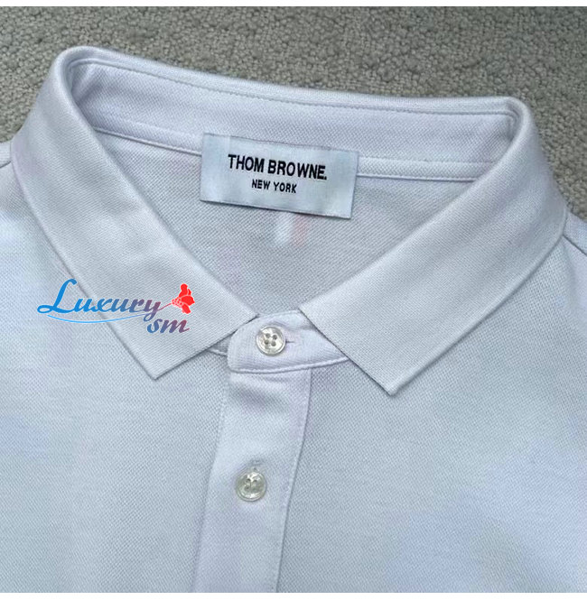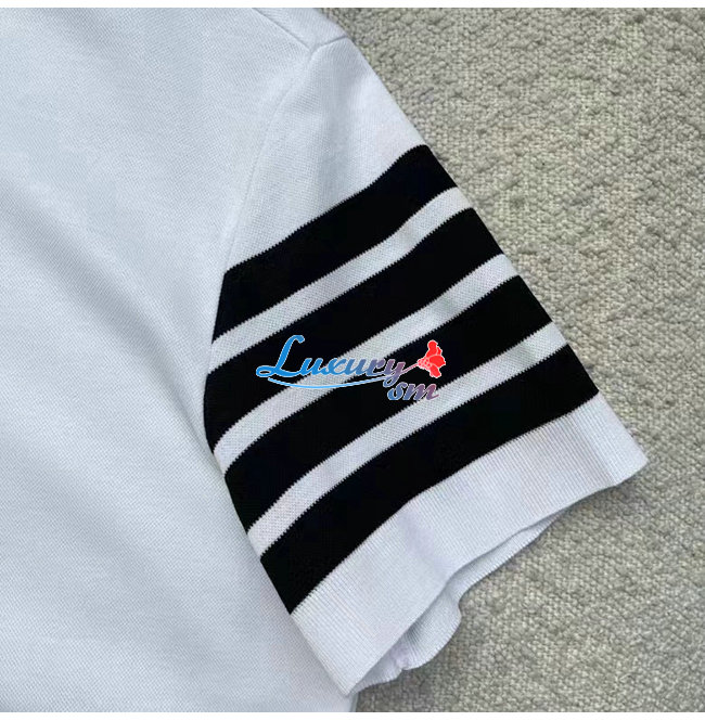 THOM BROW**-031913 톰 브라운 화이트 스트라이프 장식 폴로 티셔츠 남성용