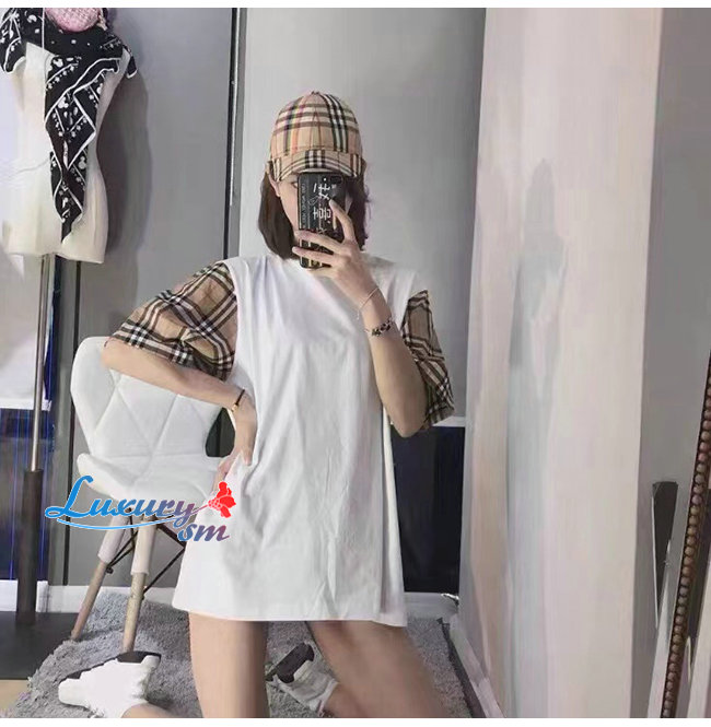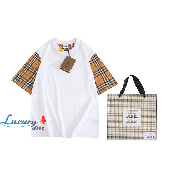 BURBER**-032116 버버리 화이트 체크 무늬 티셔츠 남여공용