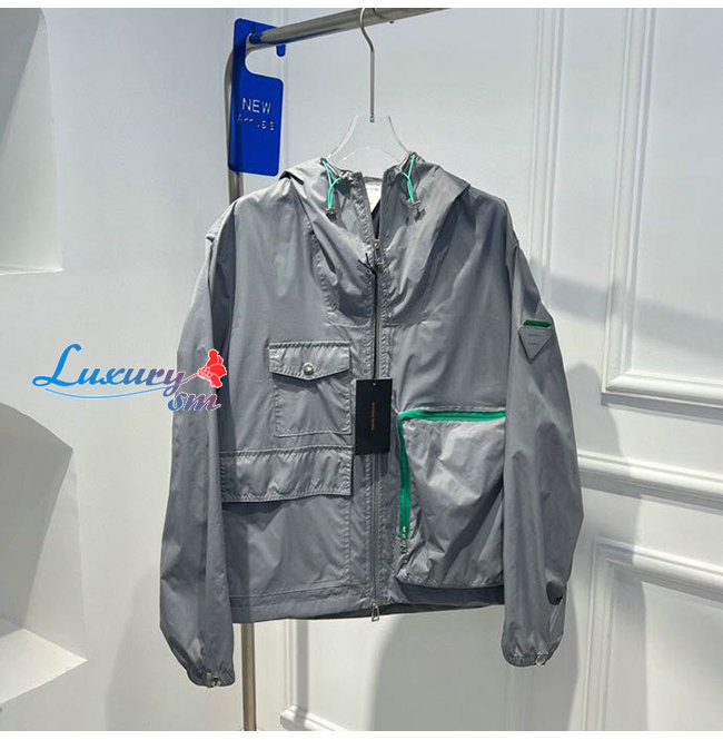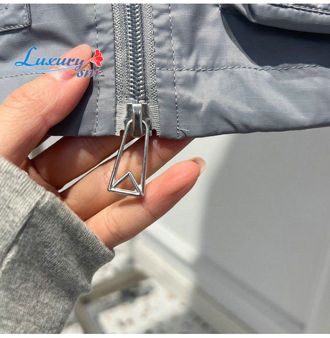 BOTTEGA VENE**-03294 보테가 베네타 그레이 트라이앵글 로고 바람막이 후드 재킷 남여공용