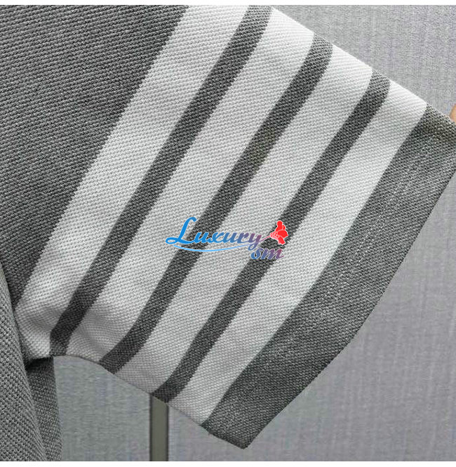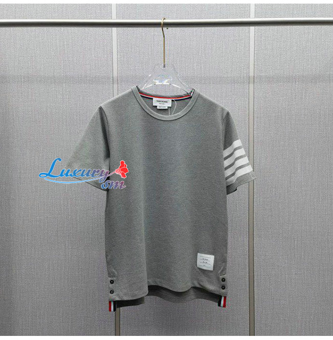 THOM BROW**-04013 톰 브라운 그레이 스트라이프 장식 티셔츠 남성용