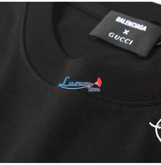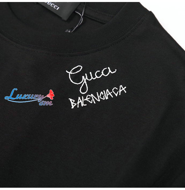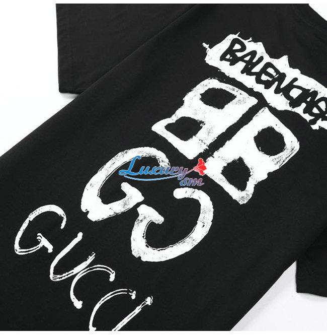 GUCCI-07183 구찌 라이트 블랙 구찌 X 발렌시아가 콜라보 프린트 장식 티셔츠 남여공용