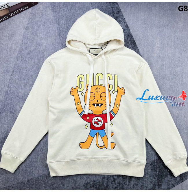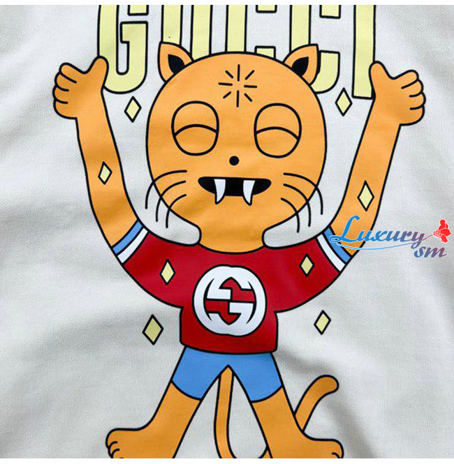 GUCCI-08121 구찌 아이보리 캣 프린트 장식 후드 티셔츠 남여공용